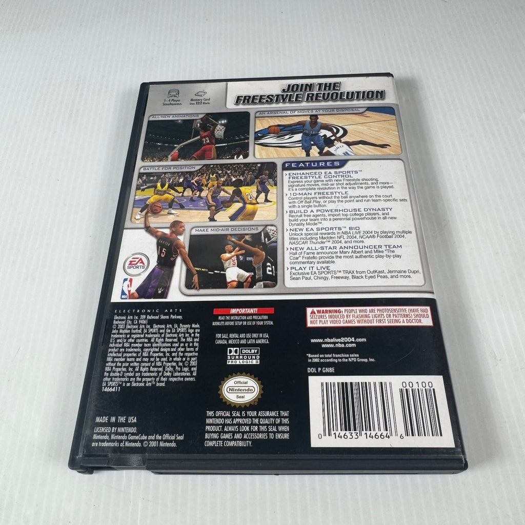 Experience the thrill of professional basketball with NBA Live 2004 for the Nintendo GameCube. This edition brings enhanced EA Sports Freestyle Control, allowing players to express their game with new freestyle shooting, signature moves, and mid-air shot adjustments. Whether playing 1-on-1 or managing team-specific sets, NBA Live 2004 delivers an authentic and immersive basketball experience.