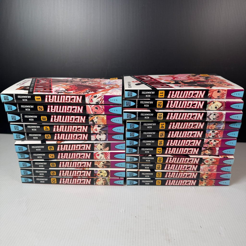These manga graphic novels belong to the Modern Age era and are presented in English. The series title is prominently displayed on each spine and cover, along with the author Ken Akamatsu's name. The volumes include all components visible in the photos: 21 individual manga graphic novels, paperback format, no additional packaging like bags or boards.