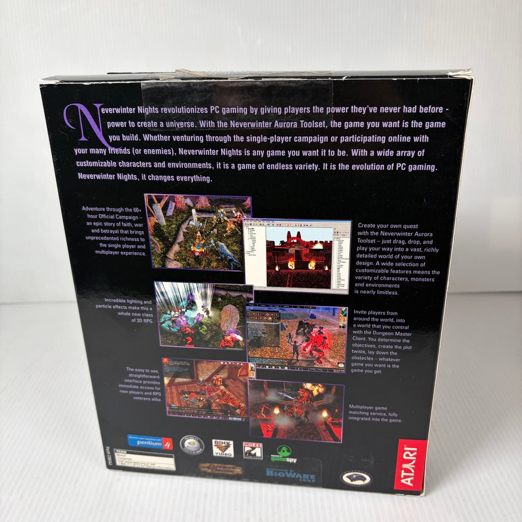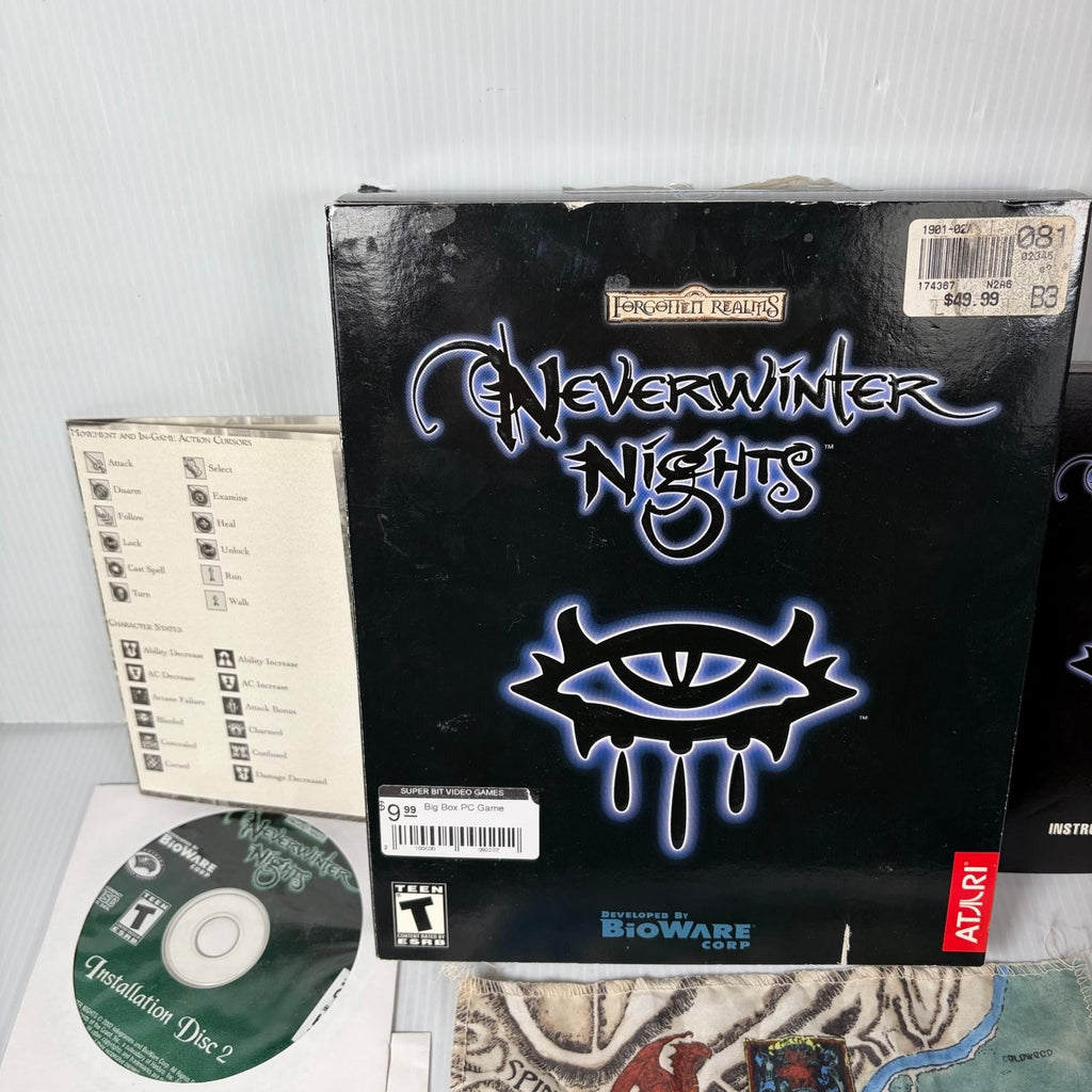 Beyond its compelling narrative, Neverwinter Nights redefines PC gaming with its groundbreaking Neverwinter Aurora Toolset, empowering players to create their own custom adventures, modules, and worlds. Dive into endless variety with customizable characters and environments, or join friends in robust multiplayer modes to participate in online campaigns. This classic big box edition includes multiple installation discs, a play disc, a comprehensive instruction manual, and a detailed cloth map of the Sword Coast, enriching your journey through this iconic Dungeons & Dragons universe. Discover endless possibilities and shape your own legends.This product is in Very Good condition.