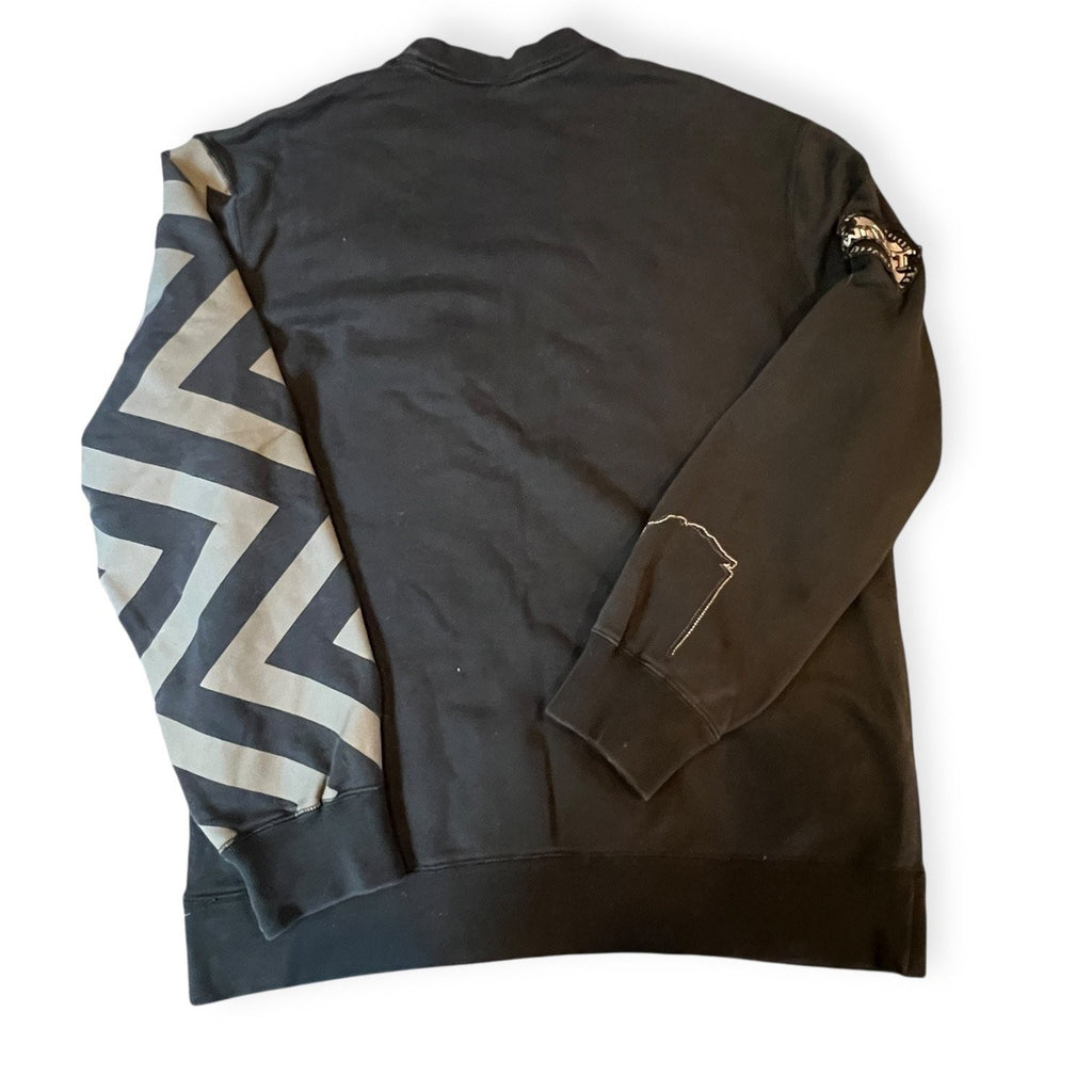 Constructed from a soft, comfortable fabric blend with a cozy fleece interior, this sweater is perfect for cooler weather, providing warmth without sacrificing breathability. Ribbed cuffs and hem offer a snug fit that retains shape, while the detailed embroidery and graphic accents make this piece stand out. Ideal for casual wear or layering, it blends fashion and function effortlessly for the modern man.This product is in Pre-owned - Good condition.