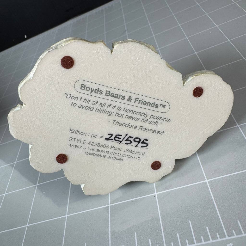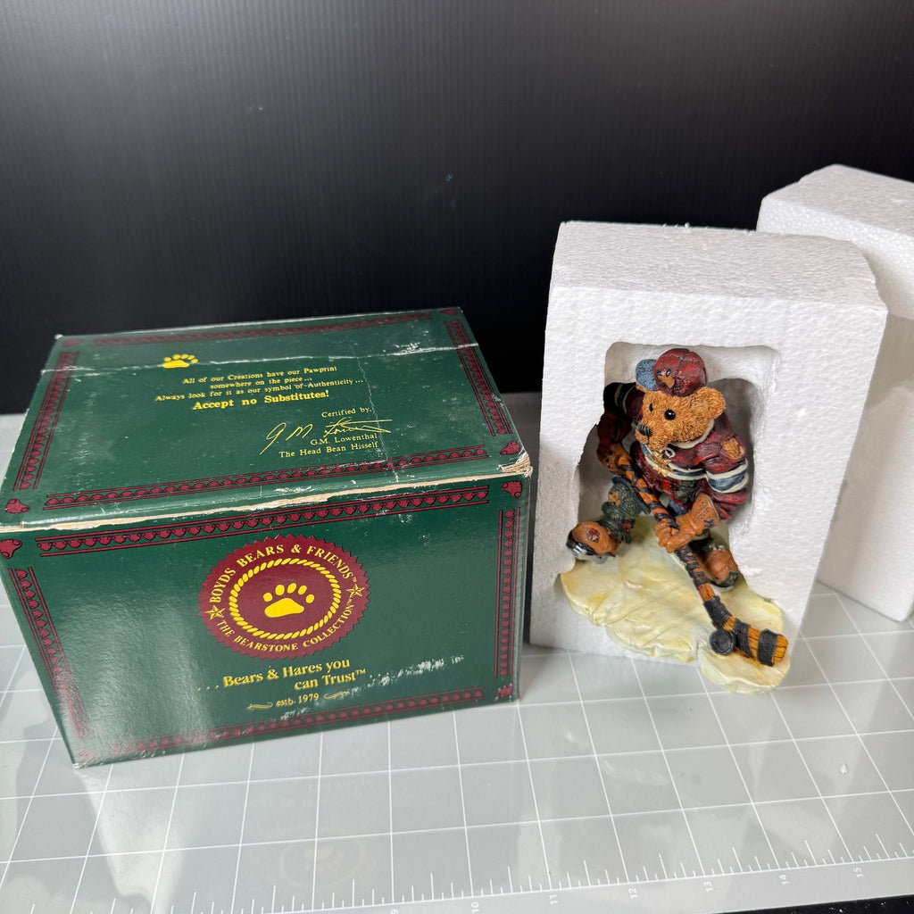 This collectible is a perfect addition for fans of Boyds Bears, hockey-themed figures, or resin statues. It comes complete in the original packaging with styrofoam inserts for secure storage and display. Limited edition numbered pieces like this are prized by collectors for their unique design and craftsmanship.