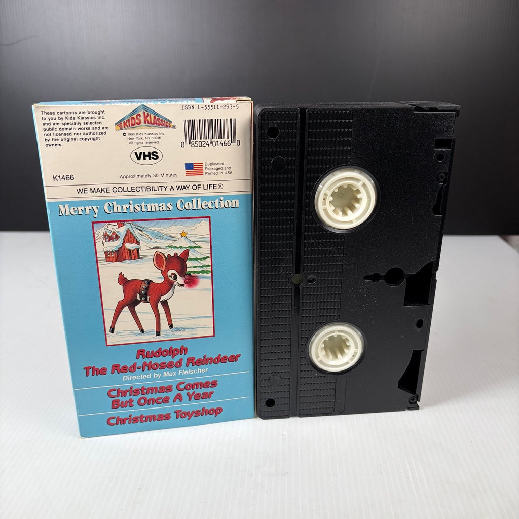 Released by Kids Klassics Inc in 1990, this VHS tape is a standard NTSC format with catalog number K1466. The original packaging showcases charming vintage-style artwork of Rudolph in a snowy landscape, adding collectible value. This edition is a duplicated VHS tape, made and printed in the USA, and is part of a special Merry Christmas Collection series. A perfect addition to any holiday movie or vintage VHS collection, this tape captures the nostalgic magic of classic Christmas animation.This product is in Very Good condition.
