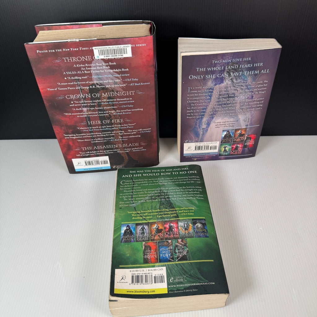 Queen of Shadows is a hardcover book. It is a previous library book. the other books are paperback.This product is in Very Good condition.