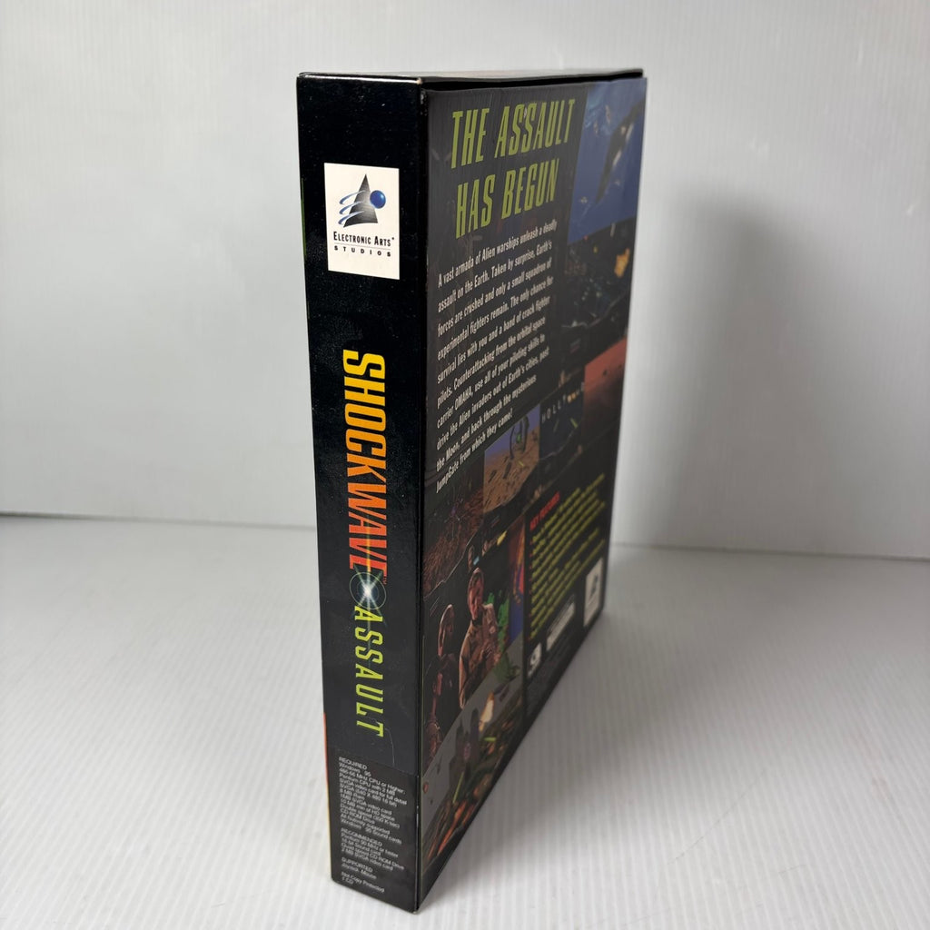Experience the intense sci-fi action of Shockwave Assault for Windows 95. This classic flight combat shooter immerses players in a desperate battle against a vast armada of alien warships that have invaded Earth. As one of Earth's last remaining fighter pilots, you'll embark on a critical mission to counterattack the invaders across Earth's cities, past the Moon, and through the mysterious JumpGate to their origin.