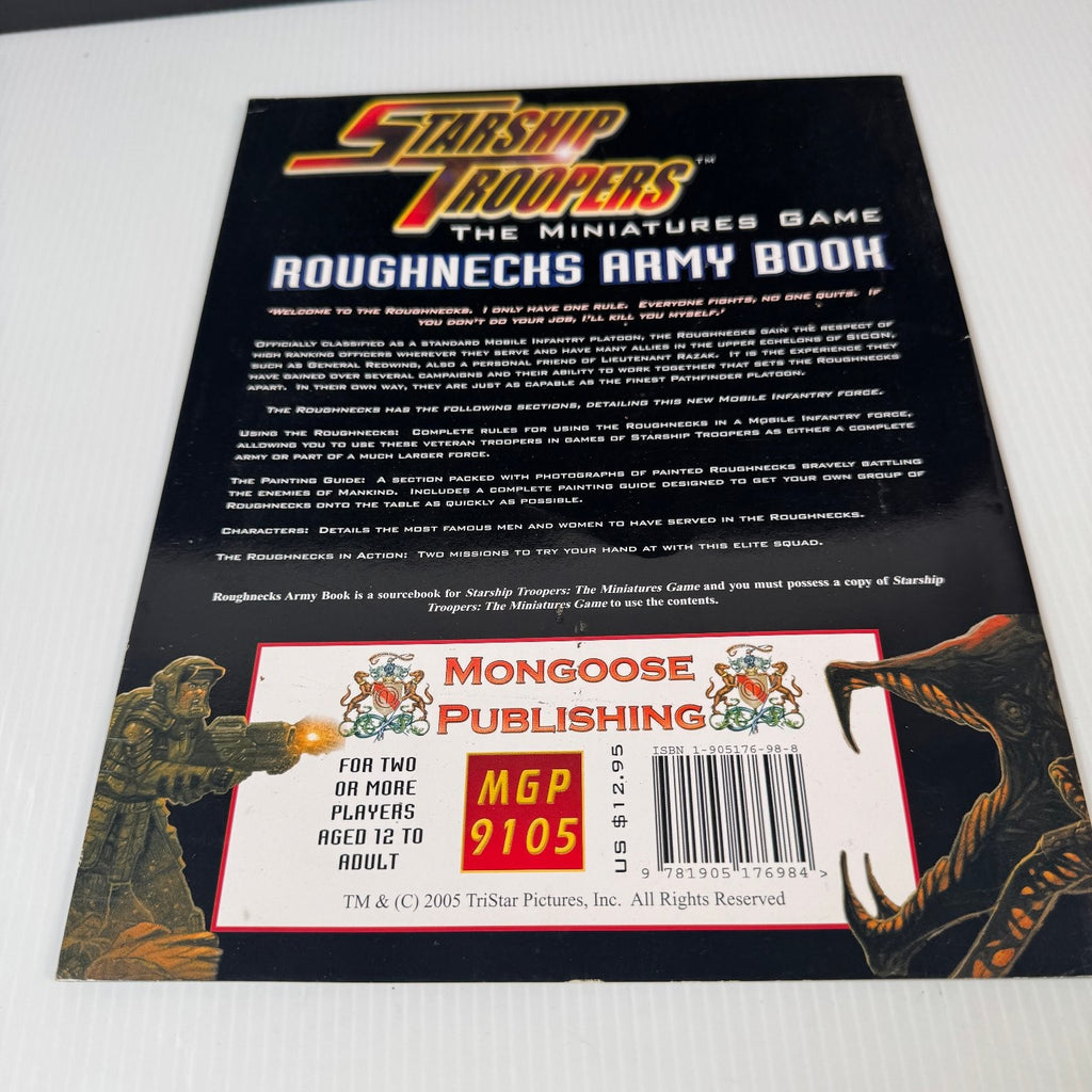 Explore the tactical depths of Starship Troopers with the Roughnecks Army Book, a 2005 sourcebook for the Starship Troopers: The Miniatures Game. Published by Mongoose Publishing, this essential supplement provides comprehensive rules for utilizing the elite Roughnecks Mobile Infantry platoon. Perfect for fans and collectors, the book includes detailed sections on unit painting, character backgrounds, and two engaging missions to test your strategic skills.