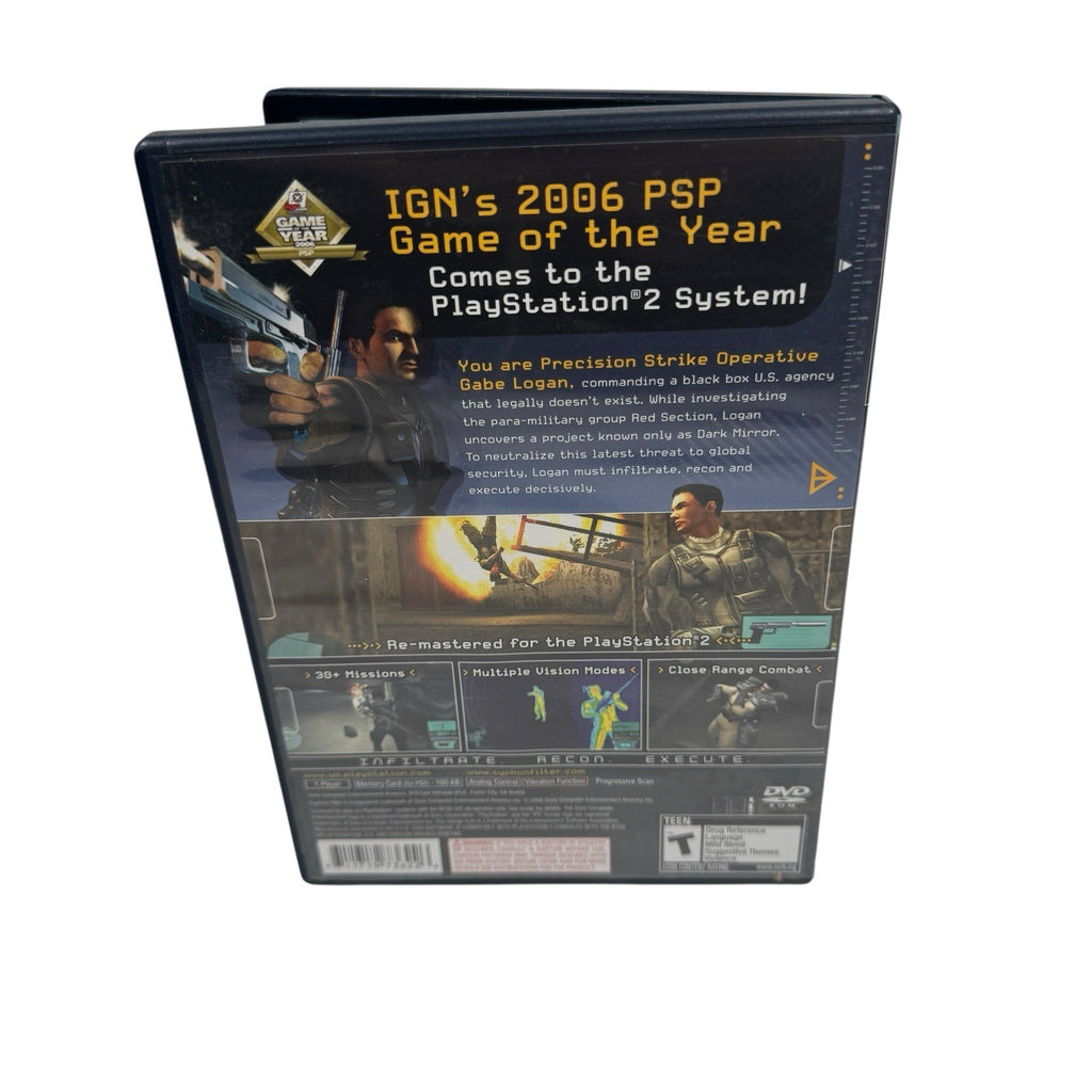 Syphon Filter: Dark Mirror is a video game released for the Sony PlayStation 2 in 2007. Published by Sony Computer Entertainment, it is part of the Syphon Filter series and falls under the shooter genre. Players can immerse themselves in the thrilling world of Syphon Filter: Dark Mirror, experiencing intense action and strategic gameplay.