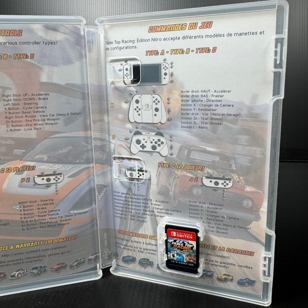 Experience high-octane fun with Table Top Racing: Nitro Edition for Nintendo Switch. This exciting racing game delivers thrilling miniature car battles across a variety of creative tabletop tracks. Engage in fast-paced combat racing featuring power-ups and a host of unique vehicles sure to keep you entertained.