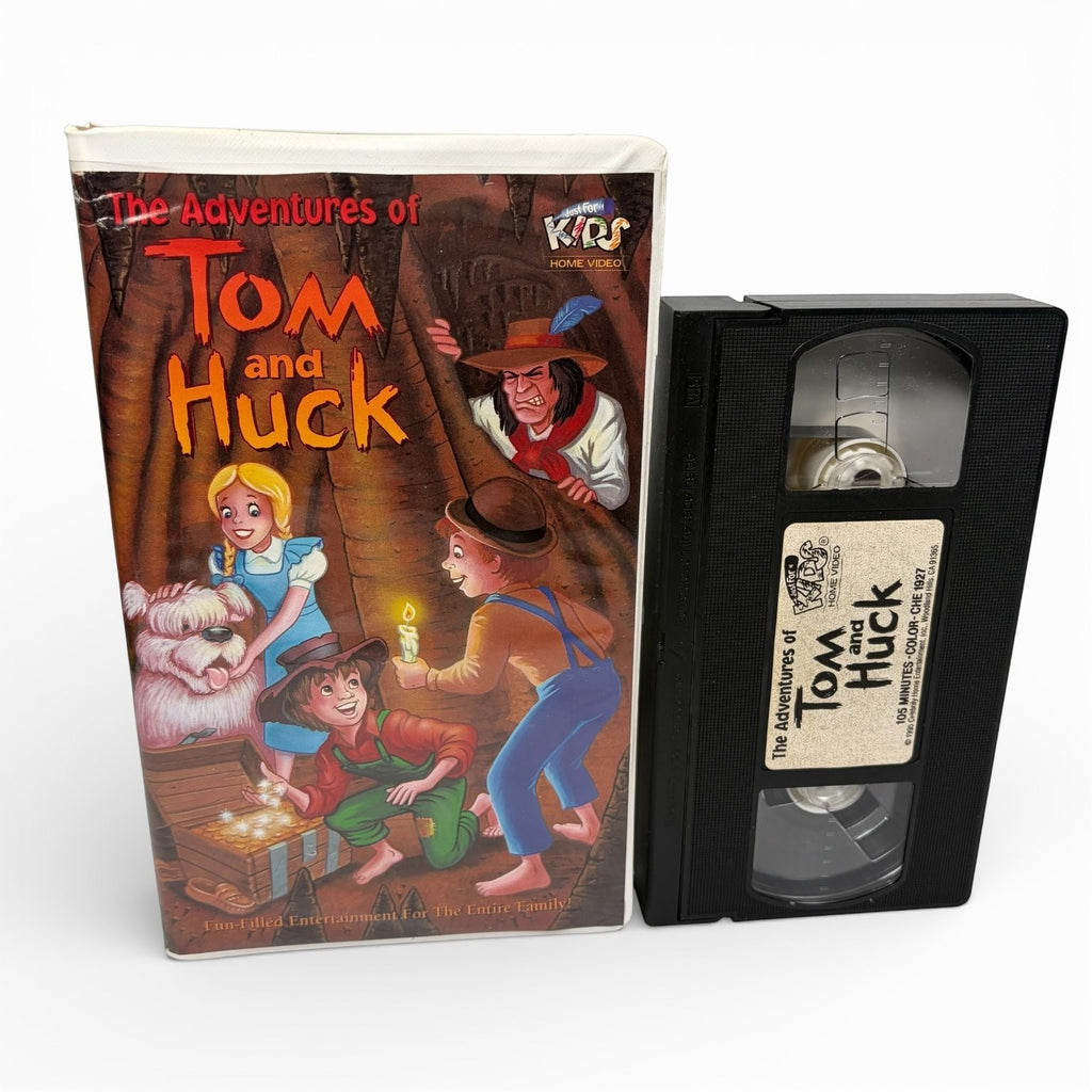 Step back into the carefree world of Mark Twain's legendary characters with this 1995 animated release of The Adventures of Tom and Huck. Produced by Nippon Animation and distributed by Celebrity Home Entertainment under the 'Just For Kids' label, this feature-length animation runs approximately 105 minutes. It beautifully captures the high-stakes escapades of Tom Sawyer and Huckleberry Finn as they roam the banks of the Mississippi, trick their friends into whitewashing fences, and hunt for Injun Joe's lost treasure.