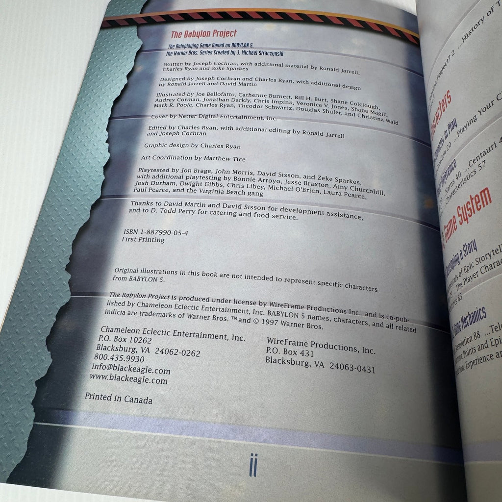 The Babylon Project is a roleplaying game based on the acclaimed Warner Bros. television series Babylon 5, created by J. Michael Straczynski. This 1997 edition, published by Chameleon Eclectic Entertainment and WireFrame Productions, offers an immersive sci-fi RPG experience set in the tense era just prior to and concurrent with the show's first season. Players can assume the roles of humans, Minbari, Narns, and Centauri, navigating political intrigue and cosmic conflict in a richly developed universe.
