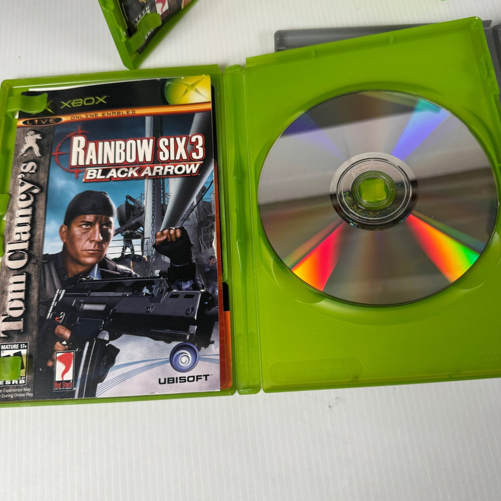 Also included are three additional titles from the Tom Clancy series: Ghost Recon Platinum Hits - the award-winning original game known for its squad-based battlefield combat, Ghost Recon Island Thunder Platinum Hits - delivering intense jungle warfare missions, and Rainbow Six 3 Black Arrow - a tactical shooter with dynamic multiplayer modes. Each game comes complete with original cases, manuals, and discs for the Xbox platform, providing hours of tactical gameplay and strategic shooting.