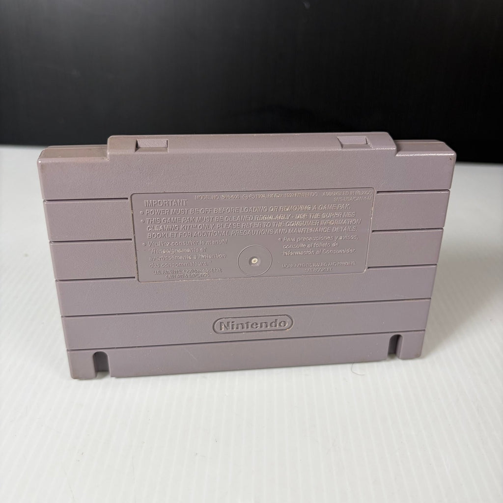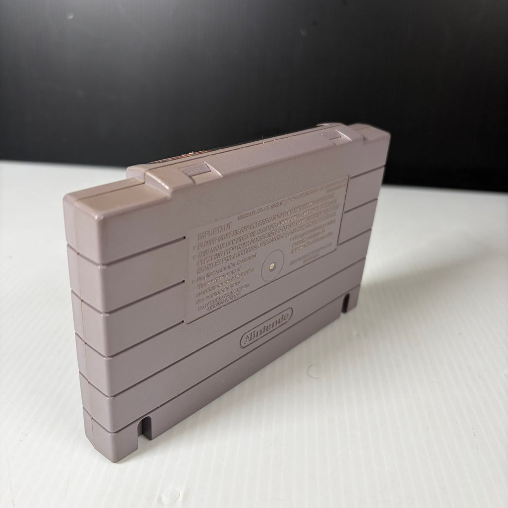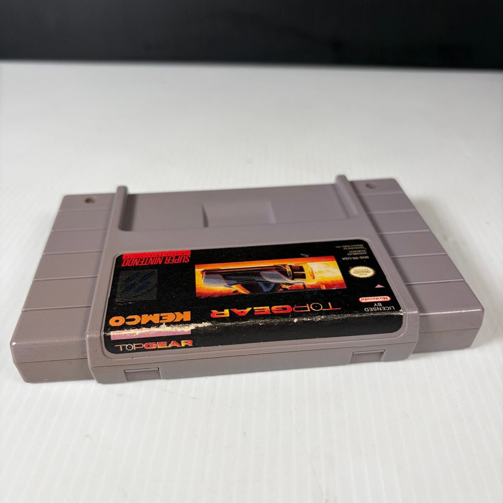 The cartridge shown is an original NTSC-U/C release, distributed by Majesco Sales, Inc. Top Gear features multiple cars, upgrade options, and diverse race tracks, making it a staple for fans of the racing genre. Compatible with all standard SNES consoles, this game cartridge offers an authentic retro gaming experience and is a valuable addition to any classic game collection.This product is in Very Good condition.