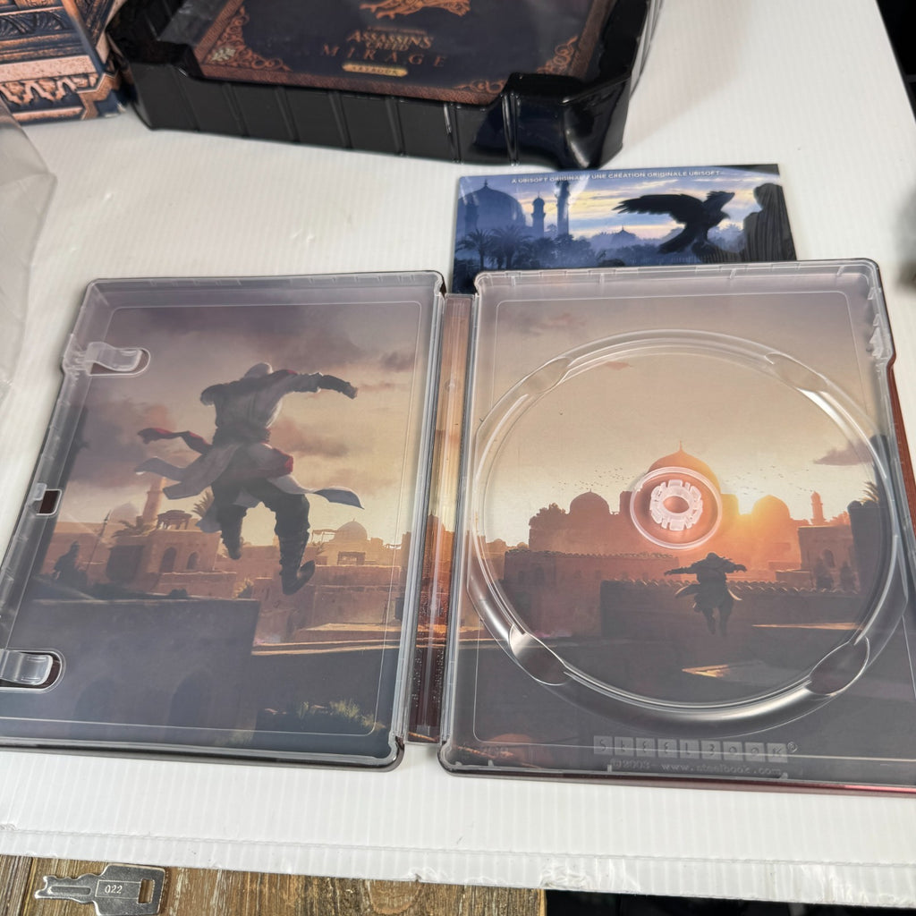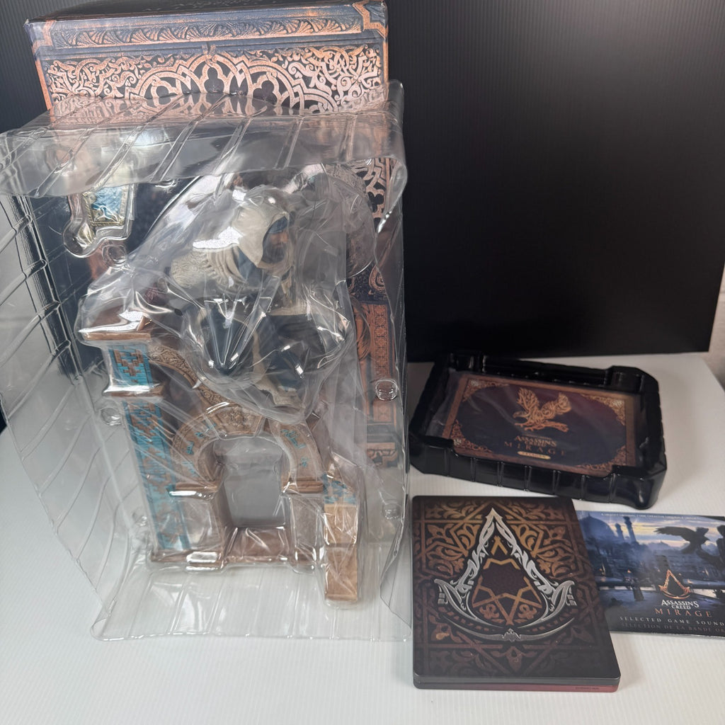 The Ubisoft Assassin's Creed Mirage Collectors Statue, Steelbook & More is a special edition package for fans of the Assassin's Creed series. This collector's edition includes a statue, steelbook, and other exclusive items related to the game. Manufactured by Ubisoft, this set is geared towards enthusiasts of fantasy, role-playing, and action & adventure genres, with a rating of M for mature audiences. The package is compatible with Microsoft Xbox 360 and Sony PlayStation 5 platforms, offering a unique and immersive experience for fans of the series.This product is in Like New condition.