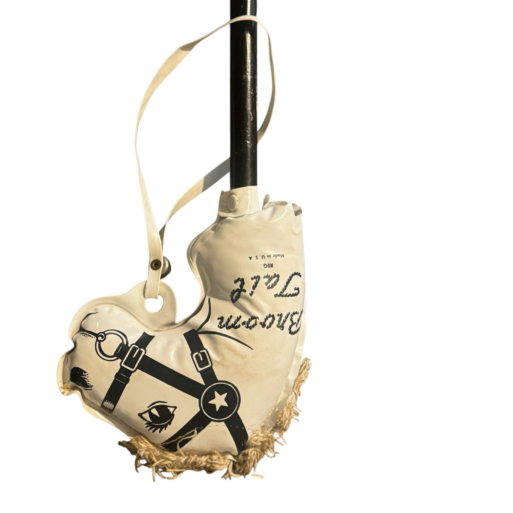 This vintage 1950’s Broom Tail Horse on a 30” wooden stick is a charming and nostalgic toy made in the USA. The Broom Tail brand adds a touch of whimsy to this toy, reminiscent of the Howdy Doody character family. With its vintage appeal and Americana charm, this unique collectible is sure to delight both toy enthusiasts and collectors of vintage and antique toys.
