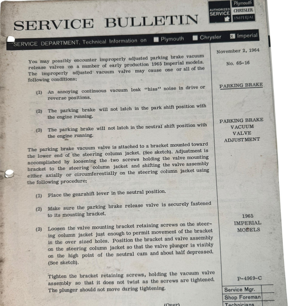 Vintage 1965 Chrysler Service Bulletins Mopar Plymouth Imperial Mechanic Documents