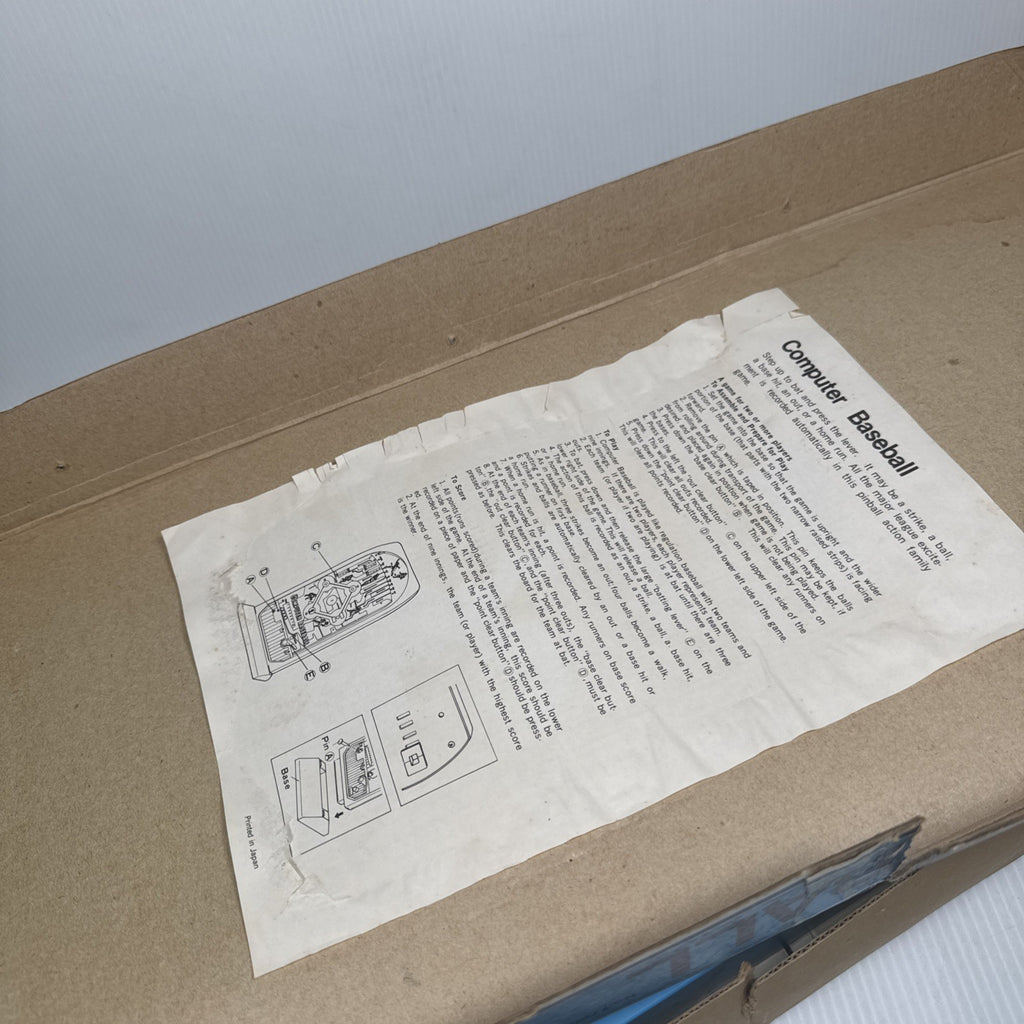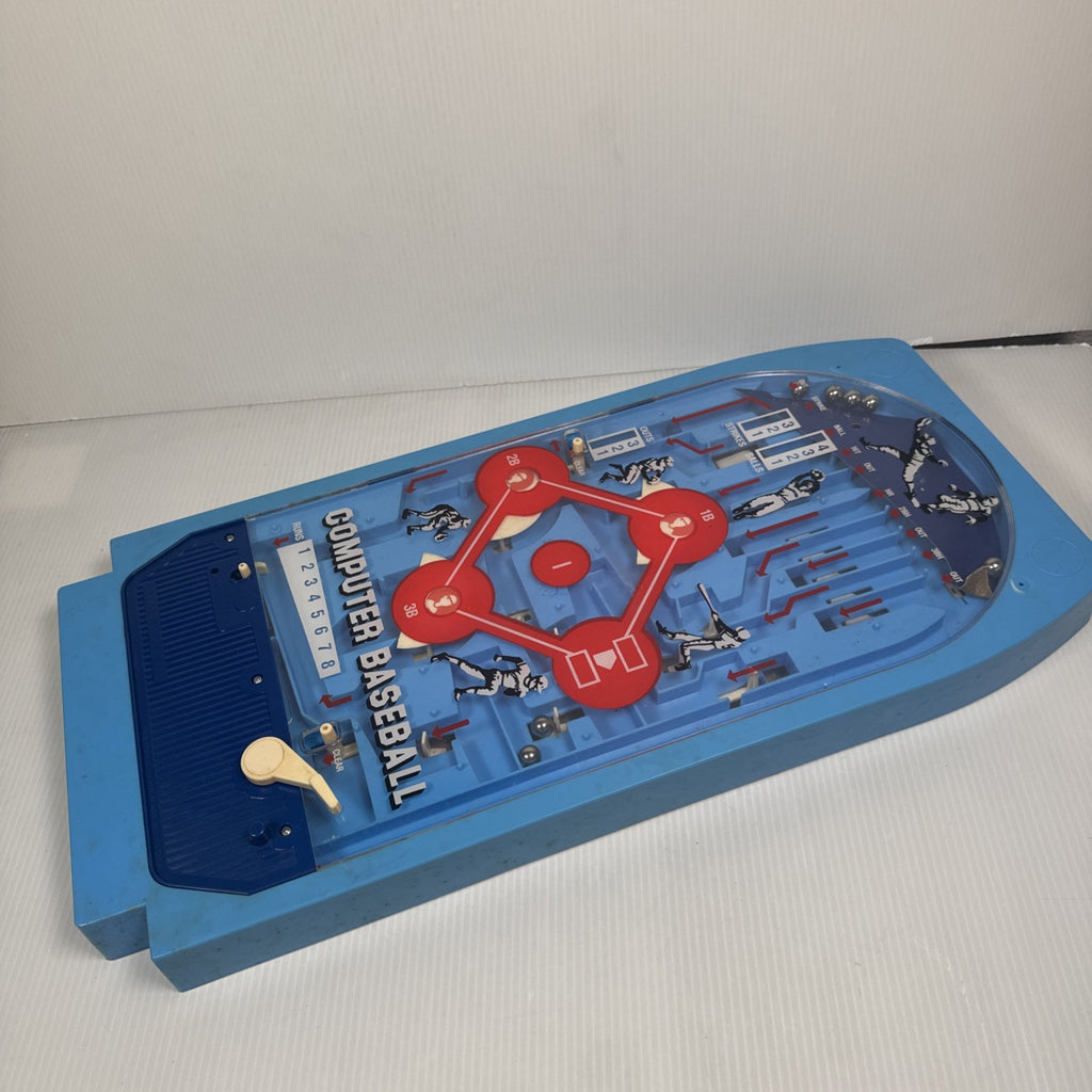 This is a vintage 1976 Computer Baseball Game by Epoch Playthings, a pinball game featuring a baseball theme. Made in Japan, this vintage toy is a rare find for collectors of vintage and antique toys.