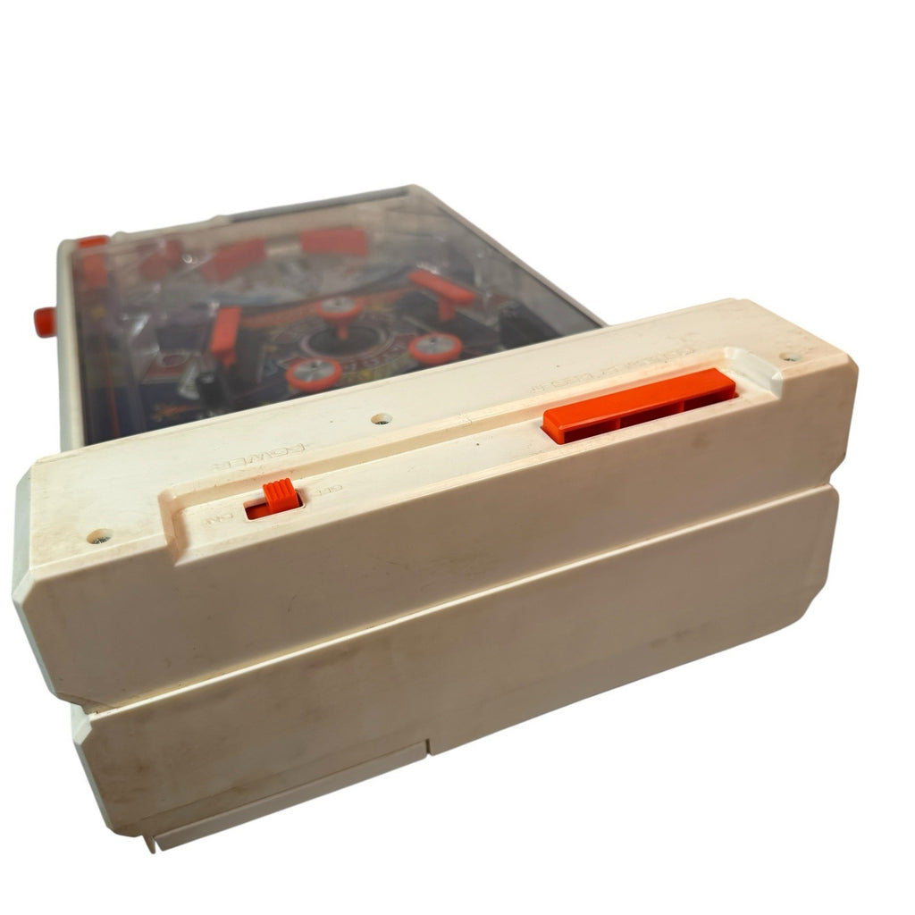 The Vintage 1979 Tomy Atomic Arcade Pinball Machine is a portable game that captures the nostalgia of classic pinball gameplay. Made in Japan, this battery-operated game features a unique "Atomic Arcade" theme that adds to its retro appeal. With its original box and unmodified design, this Tomy product from 1979 is a rare find for collectors and enthusiasts of vintage electronic games. Perfect for bringing a touch of old-school fun to any arcade or game room.