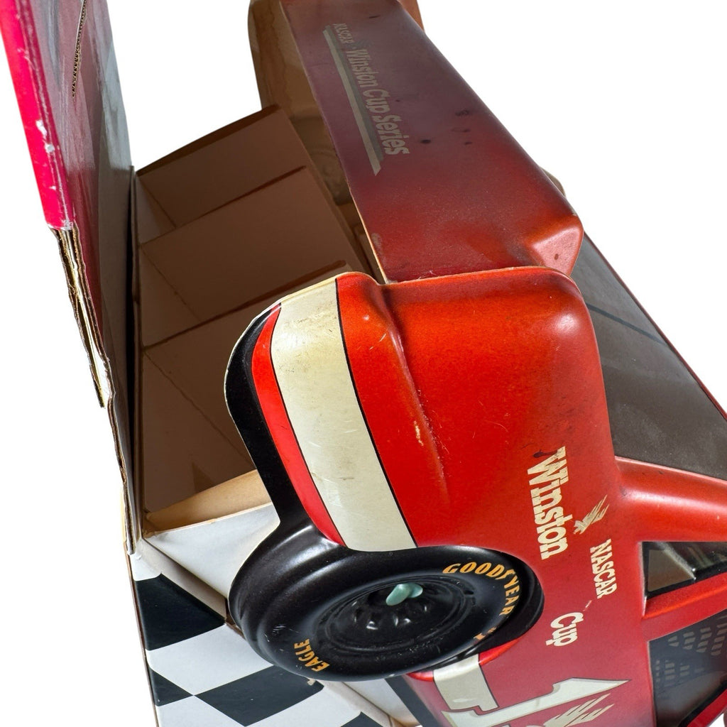 The product is a vintage 1994 Winston Cup NASCAR #1 car cigarette store advertising display. This collectible item features the Winston brand, NASCAR league, and driver number #1, making it a must-have for fans of the sport. The colorful multi-color design adds a unique touch to the advertising display, making it a great addition to any NASCAR memorabilia collection.