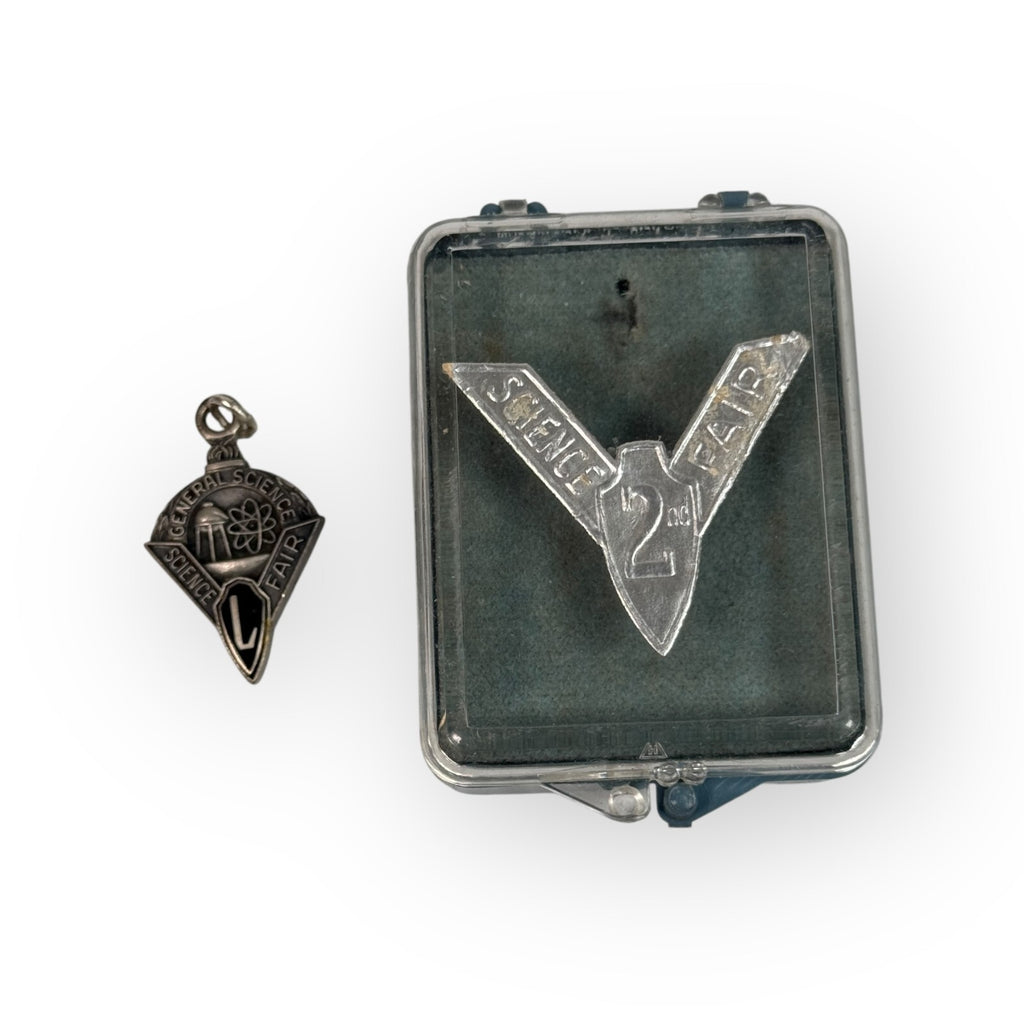 This vintage pendant award is a great addition to any collection. It is a small (less than 1") pendant in a plastic protective case. It is a 2nd place award for the science fair and assumed to be from the 1960s-1970s. See photos for condition details. This product is in Used condition.