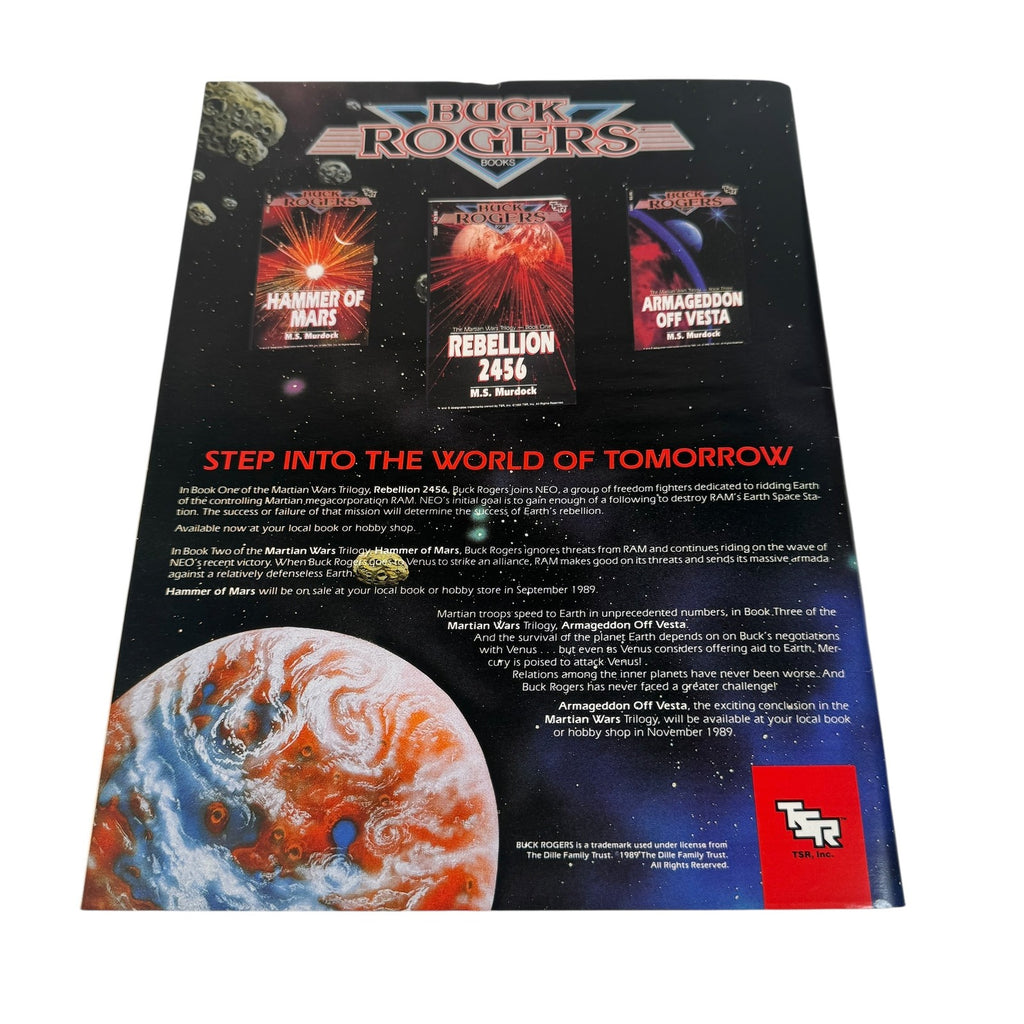 Features Buck Rogers advertisement for Martian Wars Trilogy with vibrant full-color back cover