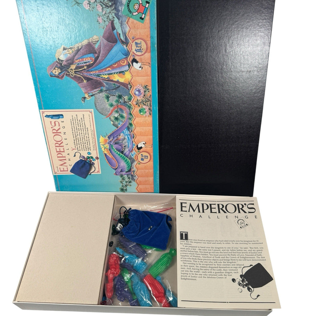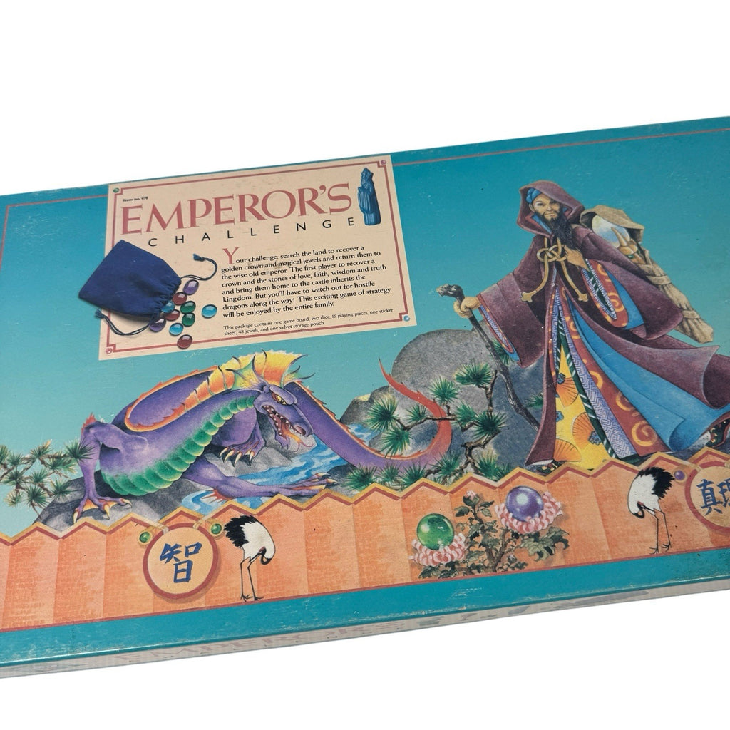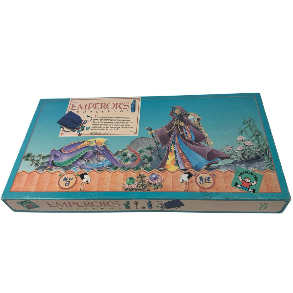 The Vintage Emperor's Challenge Board Game by Discovery Toys is a 1986 fantasy-themed game that offers 7 different games in one. Designed for 2 players, this game is recommended for ages 8 and up. With a game board featuring various challenges and storytelling elements, this classic board game is sure to provide hours of engaging entertainment for both boys and girls alike.