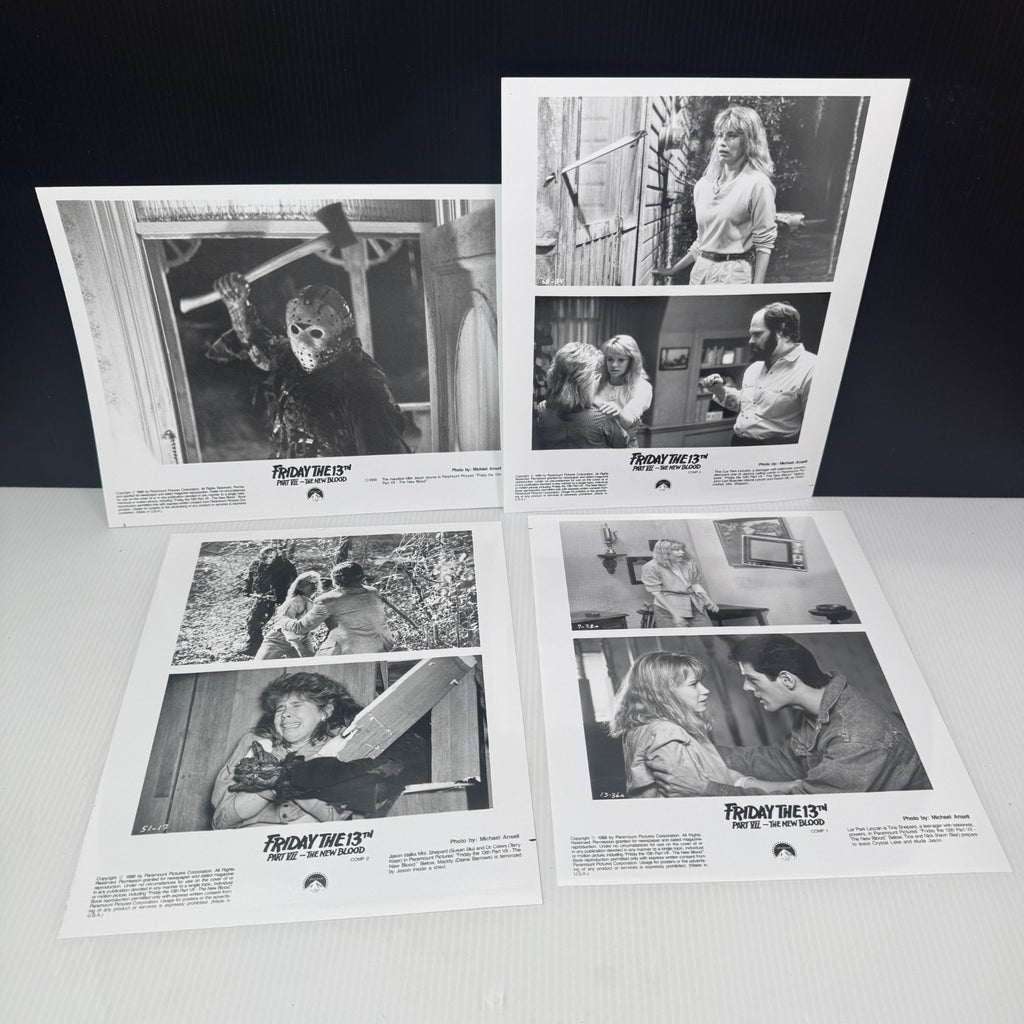This lot of 4 vintage 8x10 movie stills from Friday the 13th Part VII: The New Blood captures iconic moments from the classic horror film. These black and white photographs are original and showcase the chilling atmosphere of the movie, making them a must-have for fans of the franchise. Each still serves as a nostalgic piece of cinematic history, hailing from the United States and perfect for collectors or enthusiasts of vintage horror memorabilia.This product is in condition.