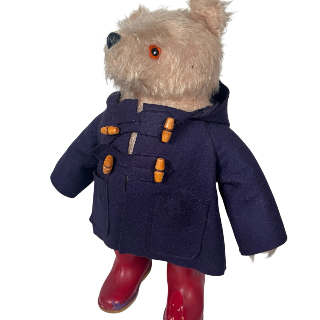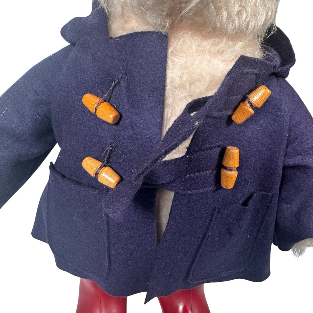 This vintage Gabrielle Designs Paddington Bear from the early 1970s comes with a pair of Dunlop Boots, making it a unique and collectible item for fans of the beloved Paddington franchise. Measuring 46 cm in size, this plush bear is an original handmade piece from the United Kingdom, showcasing the classic Paddington Bear character in all its charm. With its nostalgic appeal and vintage charm, this Paddington Bear with boots is a must-have for any bear enthusiast or collector of classic British memorabilia.
