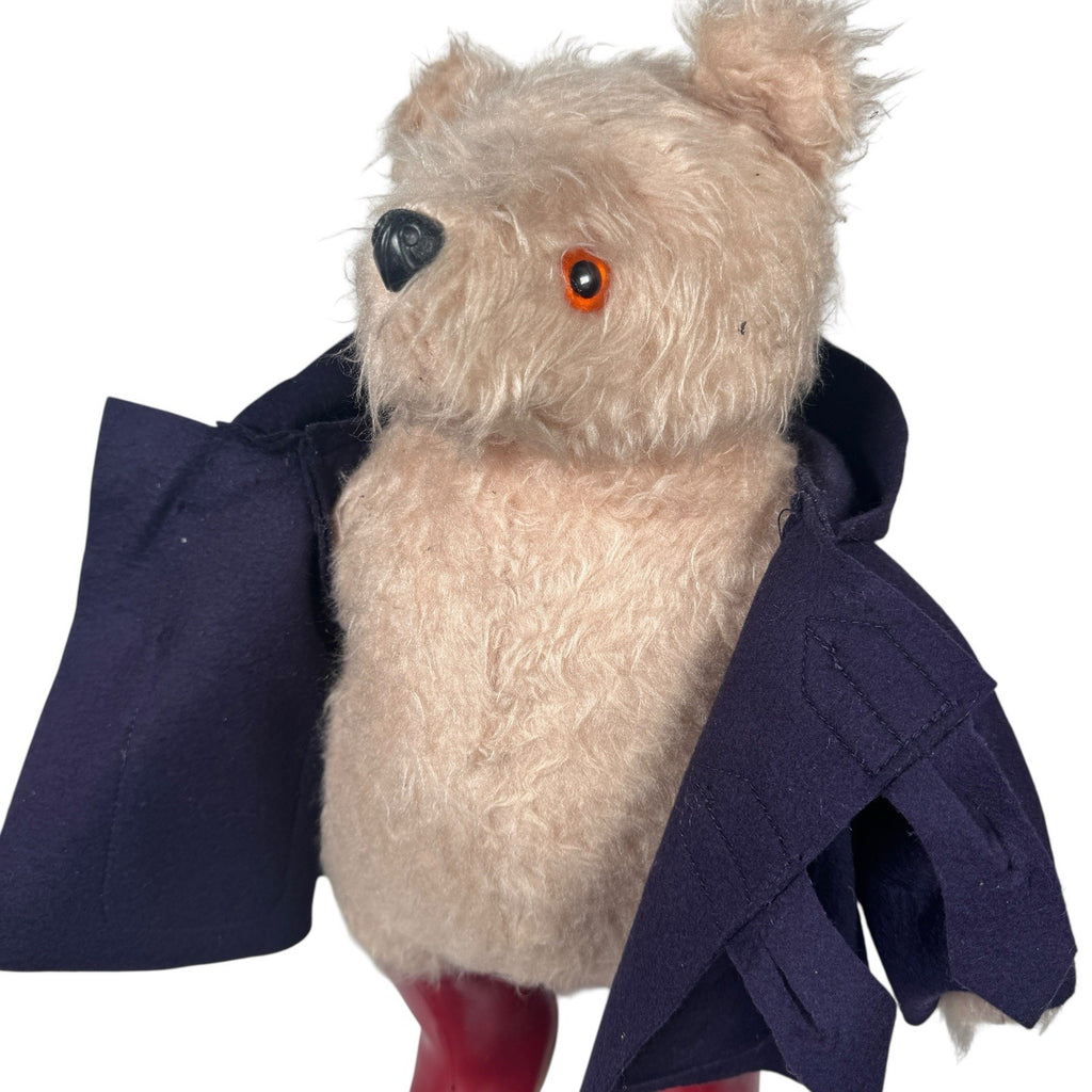 CONDITION NOTE: This paddington bear is missing his hat. The buttons are loose, though still functional, and the boots have paint on them. See photos for condition details. This bear is a rescue and will need some extra love to fix him up!