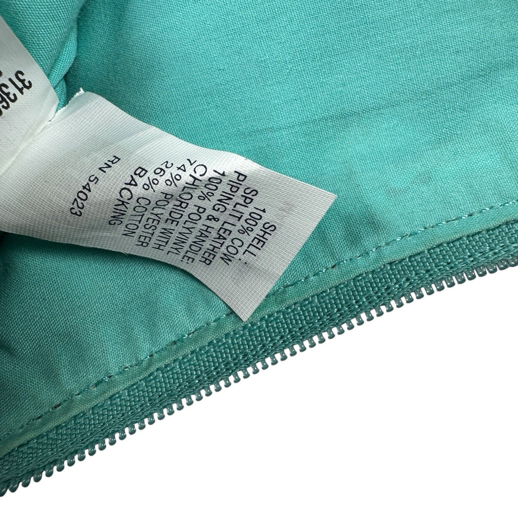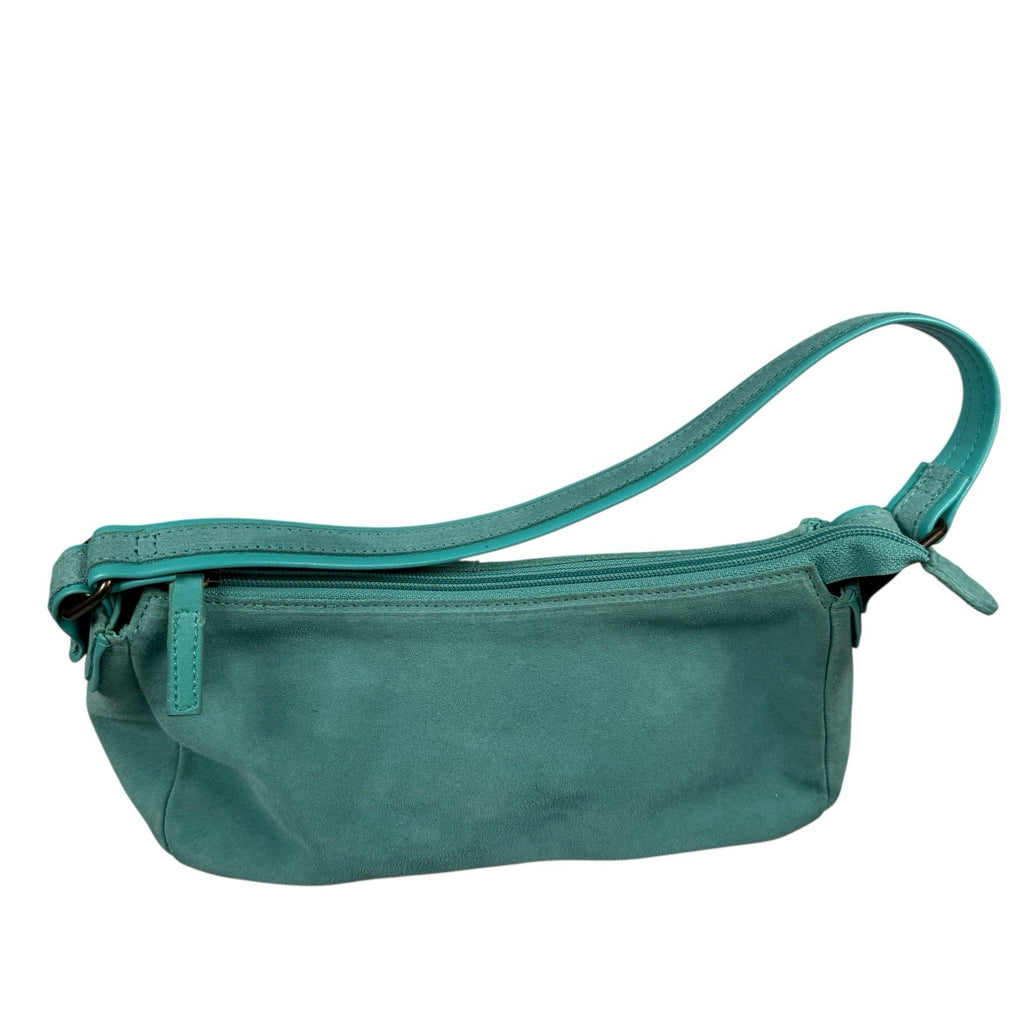 The Vintage Gap Shoulder Bag from Fall 2005 in Aqua Blue Suede is a stylish and trendy accessory for women. This small-sized bag features a solid pattern with a zipper closure and hardware in a matching blue color. The handle/strap color and material are also Aqua Blue, making it a perfect match for the exterior color. The bag is lined with polyester and is part of the Gap product line, adding a touch of sophistication to any outfit. Perfect for carrying essentials while adding a pop of color to your ensemble.