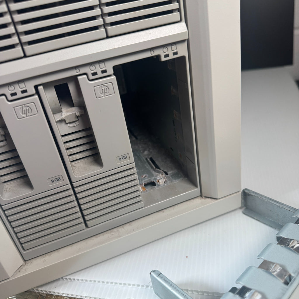 CONDITION NOTE: This NetServer was tested for power only. We checked for hard drives. The bottom metal has some corrosion as shown in the photos. 2 of the drive sections have broken plastic as shown in the photos. Sold as is for parts or repair, not fully tested. No returns.