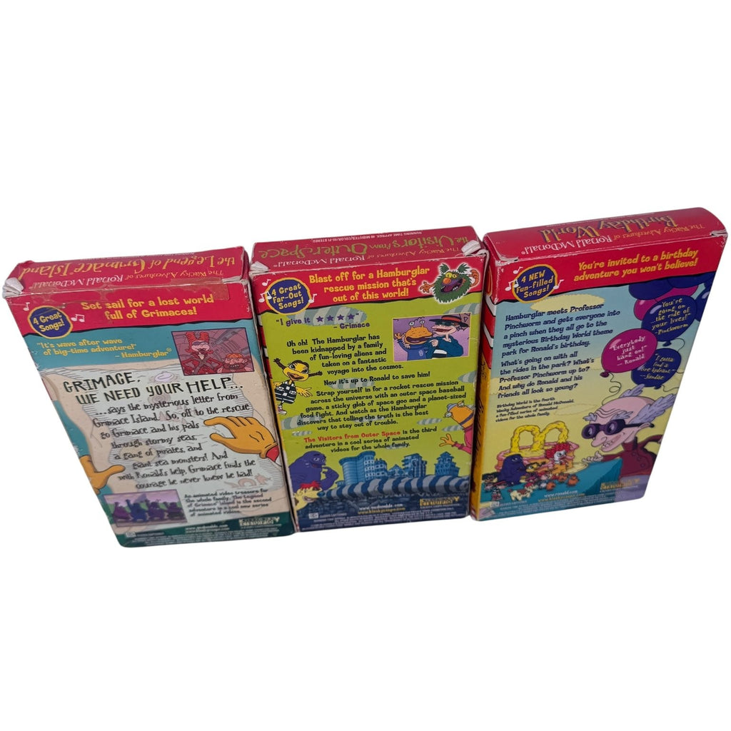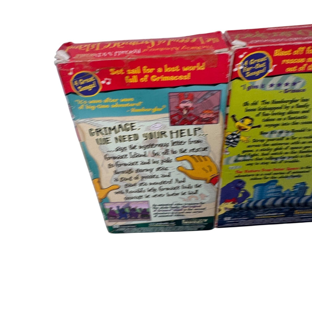 Produced and distributed by McDonald's, these tapes are a nostalgic collectible for fans of the iconic fast-food mascot. The tapes come in their original cardboard slipcases, featuring vibrant artwork of Grimace, Hamburglar, and friends. This set is a great addition for collectors of vintage McDonald's memorabilia or families looking to enjoy wholesome children's entertainment from the late 90s. The VHS format is NTSC standard, compatible with North American VCR players.