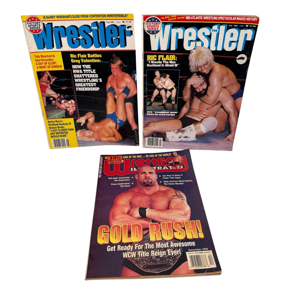 This lot of 7 vintage wrestling magazines from 1980 features issues from popular publications like Inside Wrestling, Sports Review, and Wrestling Illustrated. The magazines showcase the iconic wrestler Rowdy Roddy Piper and others and are original prints from the United States. This collection is a nostalgic piece of sports memorabilia that captures the essence of vintage wrestling culture from the 1980s.