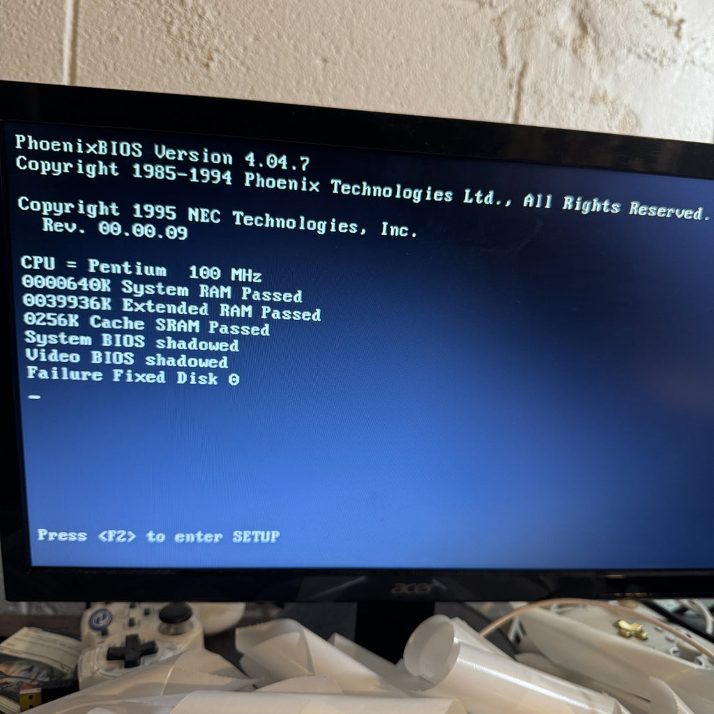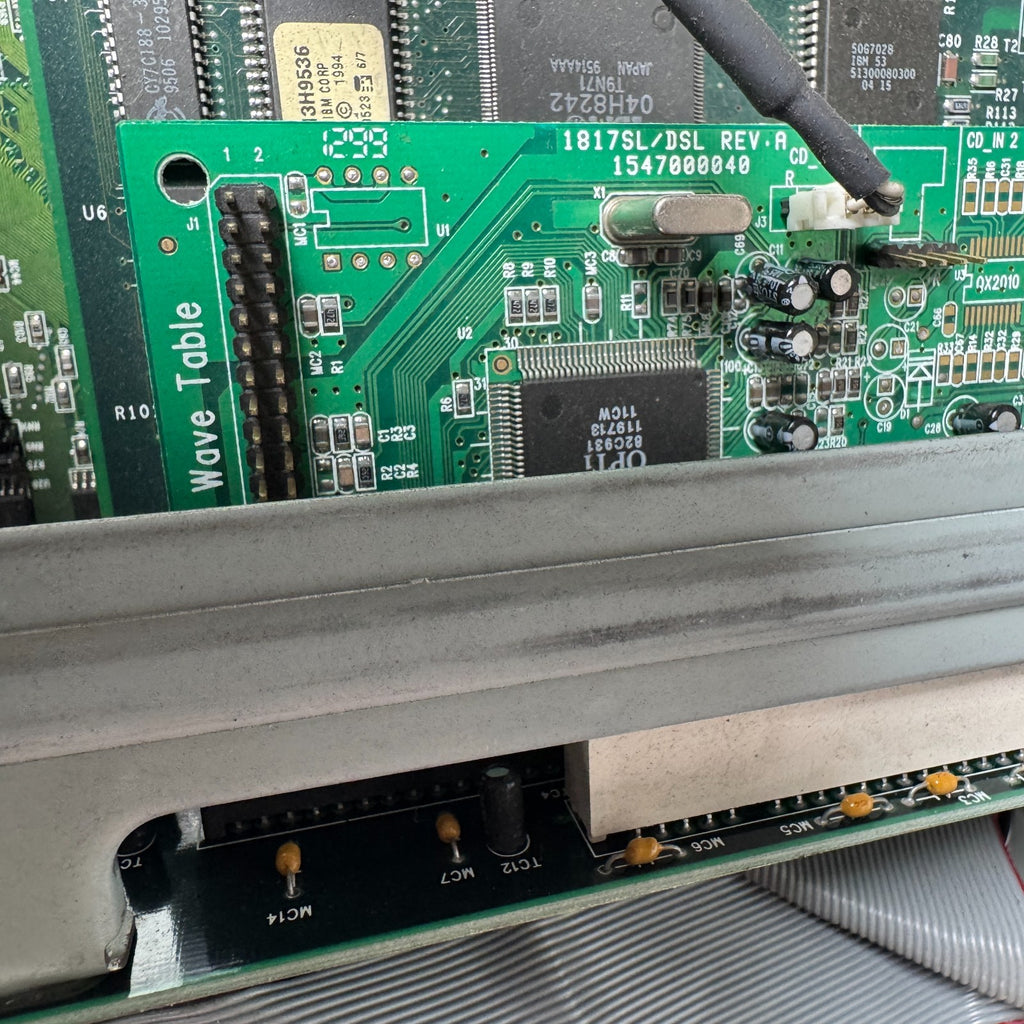 Inside, you’ll find period-correct hardware including integrated video, ISA expansion, and an IBM Auto 16/4 Token Ring ISA network adapter, as well as Wave Table audio circuitry on a daughterboard. This unit is being sold as-is. It did not load beyond the initial screen shown in the photos. We went into setup mode to take a photos of the setup screen. We took photos of the inner components. Sold as is, as shown, no returns for parts or repair. We did no further testing or inspection.