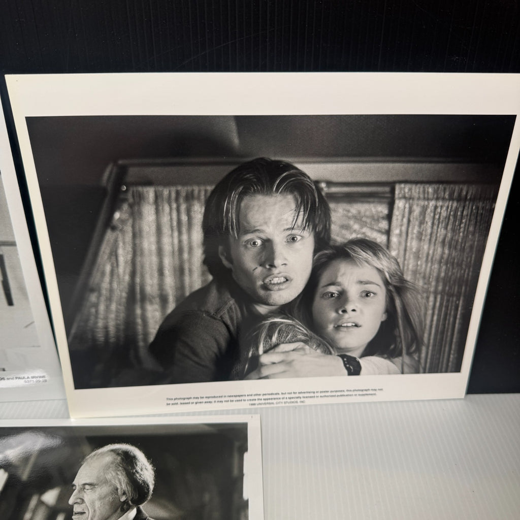 This is a set of vintage 8x10 promo movie stills from the horror film "Phantasm II," released in 1988 by Universal. These black and white photographs are original and were taken in the United States. The images capture iconic moments from the movie, making them a collectible item for fans of classic horror films.This product is in condition.
