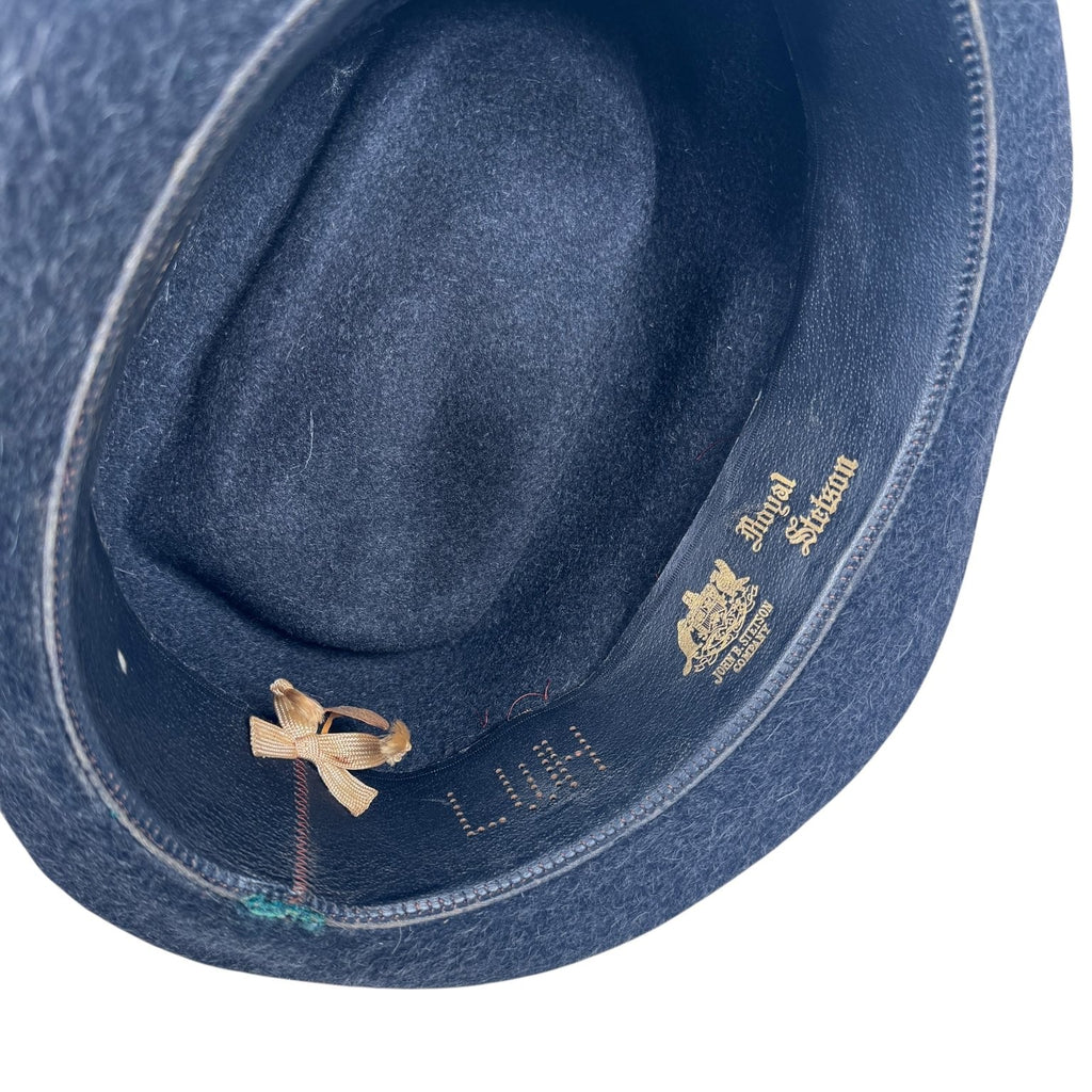 Designed for comfort, the interior features a leather sweatband stamped with the Stetson Royal logo. No size or content specifics are shown inside the hat, just the engraving "LWH". Measures roughly 8" front to back and 6" side to SideThis product is in Pre-owned - Good condition.