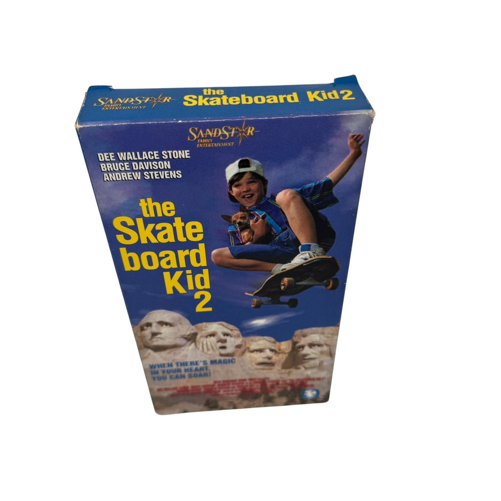 This is an original VHS release of "The Skateboard Kid 2," a family adventure movie starring Dee Wallace Stone, Bruce Davison, and Andrew Stevens. Distributed by Sandstar Family Entertainment.
