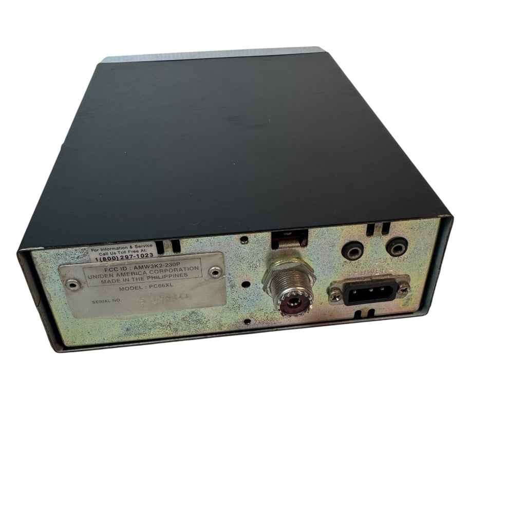 The Uniden PC66XL CB Radio is a classic base station designed for reliable and clear communication. Featuring a robust metal chassis with a sleek black and silver finish, this radio offers durable construction and a professional look suitable for both home and office use. Its compact design allows for easy placement on any desktop or mounting location.