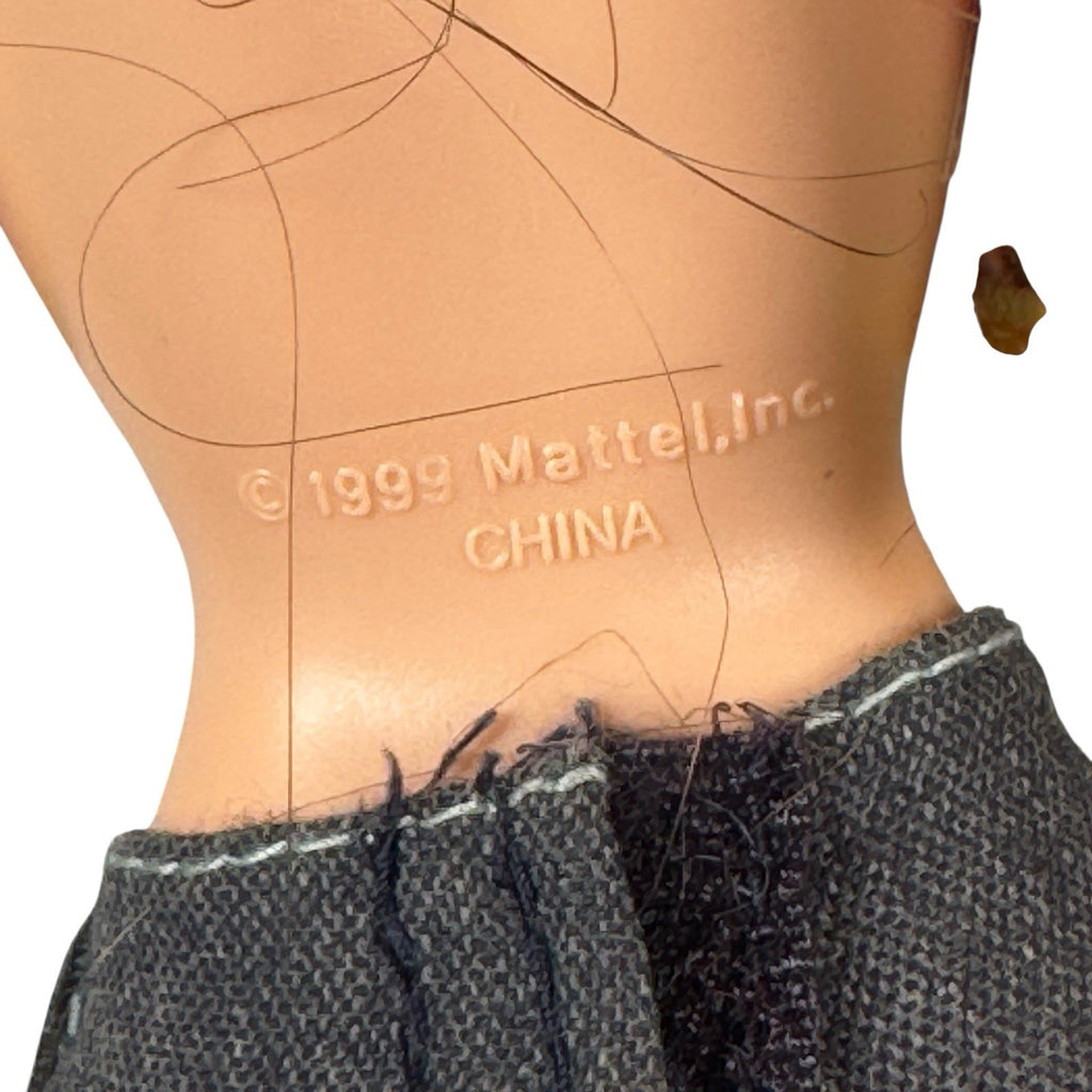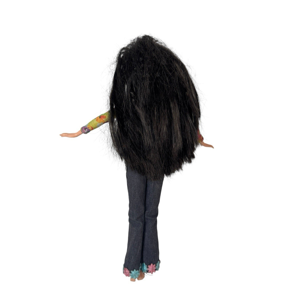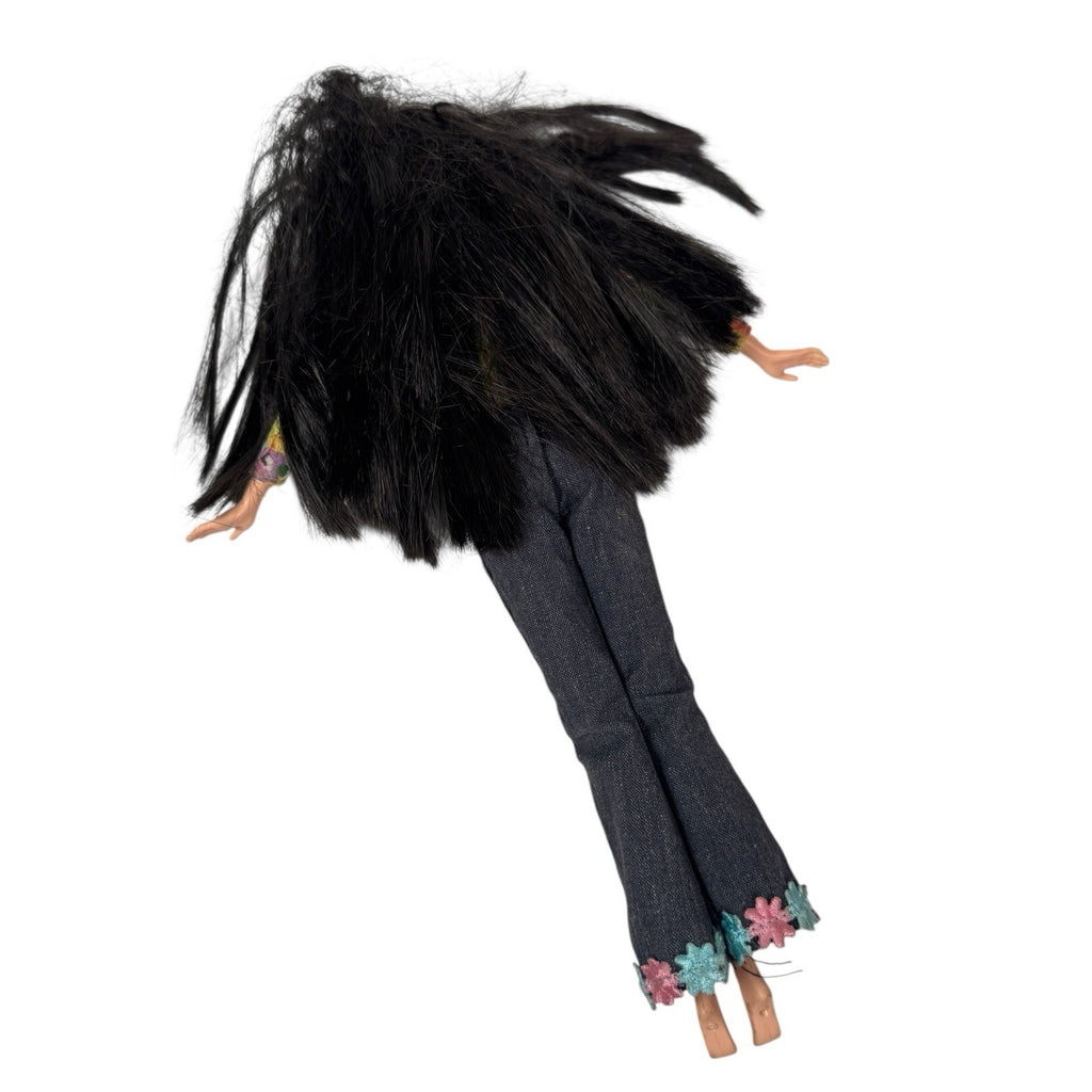 This Vintage Y2K Barbie My Scene Nolee Doll with Flower Flares is a collectible 12-inch fashion doll from Mattel's My Scene Dolls product line. This Asian/Pacific Islander character, Nolee, has wavy black hair and a medium complexion. Made of vinyl, cloth, and plastic, this original Barbie doll from 1999 comes without packaging and exudes a Fashion & Beauty theme. Perfect for collectors of vintage Barbie dolls, this item is a nostalgic piece from the late 90s that embodies the trendy style of the era.