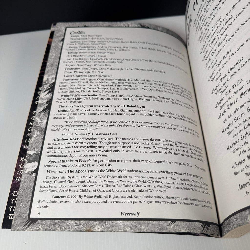 This softcover edition provides extensive content for players and storytellers alike, exploring the corrupted earth, the rise of the Wyrm, and the lore of werewolves fighting to save the world. As a collectible piece from the early '90s renaissance of tabletop RPGs, this book holds value for both gameplay and collection. The inclusion of ISBN 1-56504-027-9 and a visible barcode further authenticate this original release from White Wolf, a pioneer in narrative-driven role-playing games.This product is in Used condition.