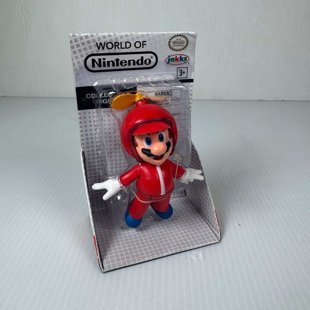This World of Nintendo Propeller Mario action figure captures the iconic character from the legendary Super Mario franchise in a highly detailed and poseable design. Standing approximately 3.5 inches tall, this figure is crafted from durable ABS plastic, featuring vibrant colors and the signature red propeller suit complete with helmet and spinning propeller on top. Its articulation allows for dynamic posing and display, making it a versatile addition for collectors and fans alike.