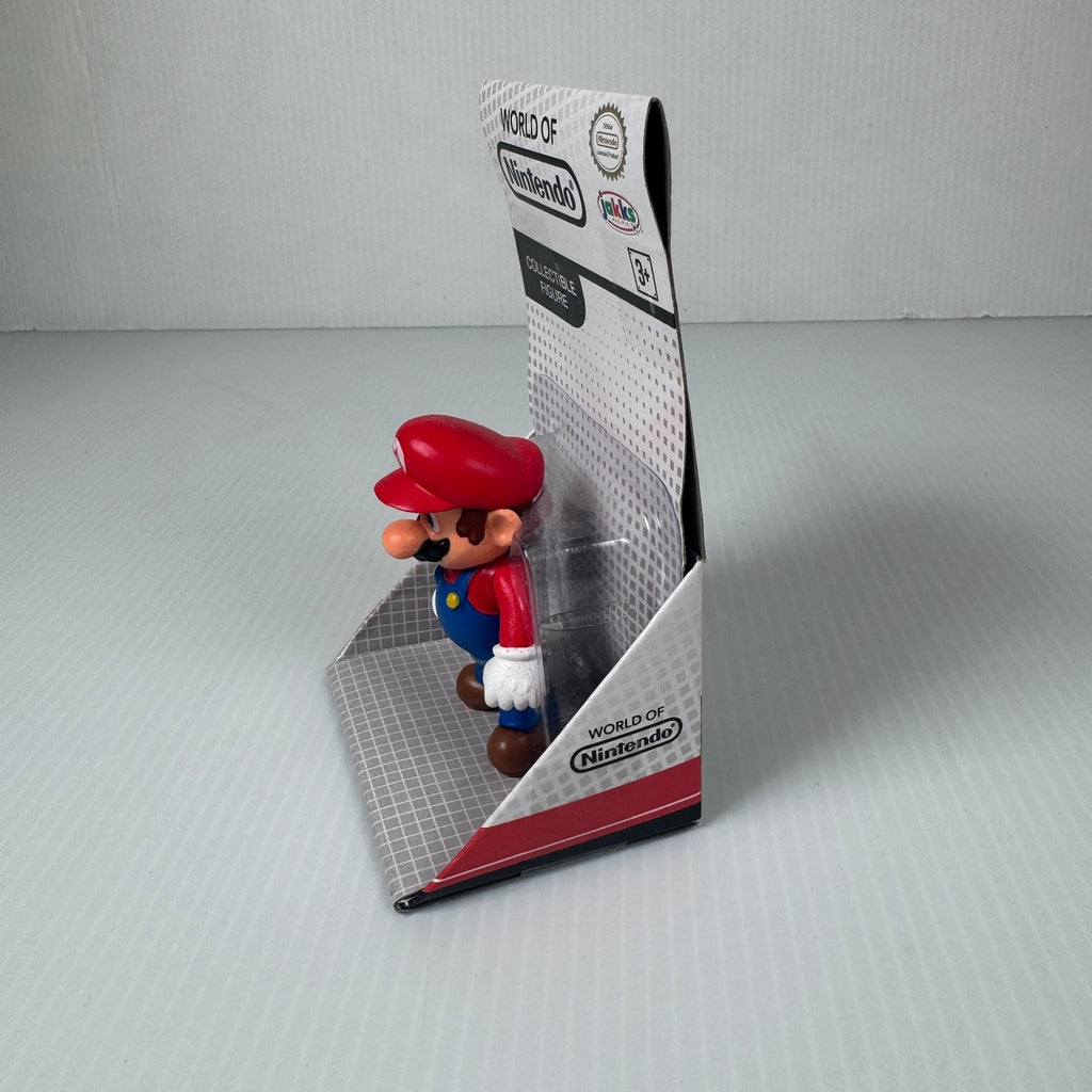 This World of Nintendo Mario action figure captures the iconic video game character from the beloved Super Mario franchise. Made from durable ABS plastic, this collectible figure stands approximately 3 to 4 inches tall and is designed for kids ages 3 and up. It features vibrant colors true to Mario's classic look - his red hat with the iconic 'M', blue overalls, red shirt, white gloves, and brown shoes. The figure is highly detailed and poseable, allowing for dynamic play and display.