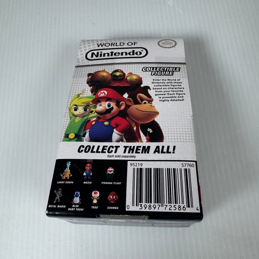 Packaged in a blister card with branded World of Nintendo graphics and official Nintendo licensing, this collectible is part of a larger series including characters like Larry Koopa, Piranha Plant, and Goomba. The packaging features a barcode (UPC 039897725864) and displays the Jakks Pacific logo, confirming its authenticity. A perfect addition for Super Mario fans and collectors seeking officially licensed Nintendo action figures from the 2010-2019 era.