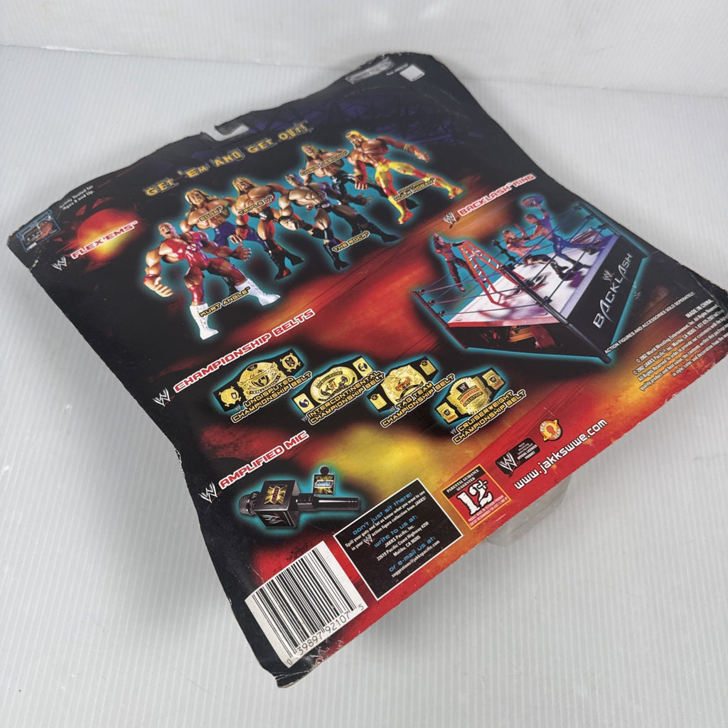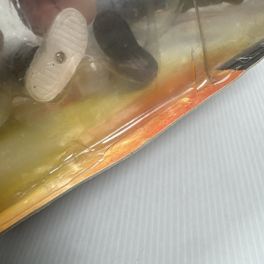 This wrestling figure is sealed in its original package. The cardback has wear from age and shelf wear including curing, corner wear, and wear to the bottom plastic. See photos for specific wear to the packaging.