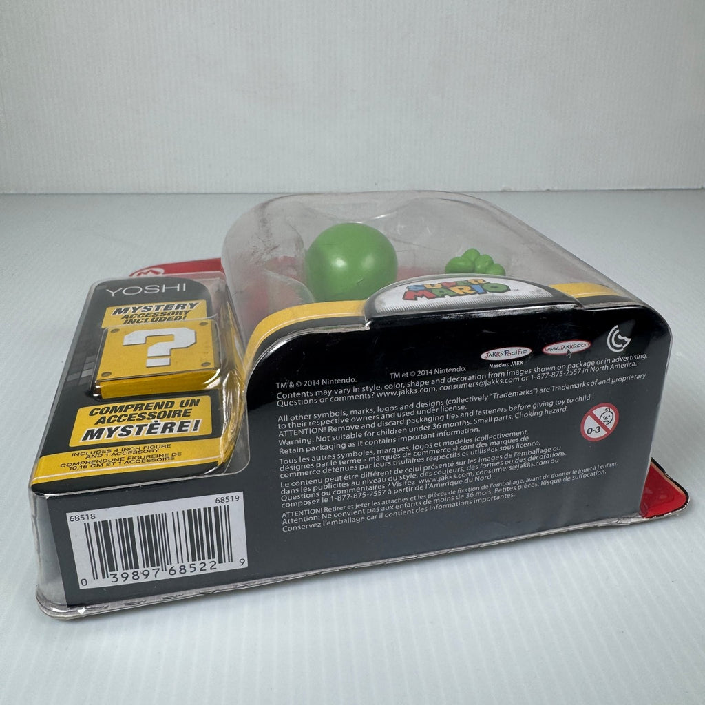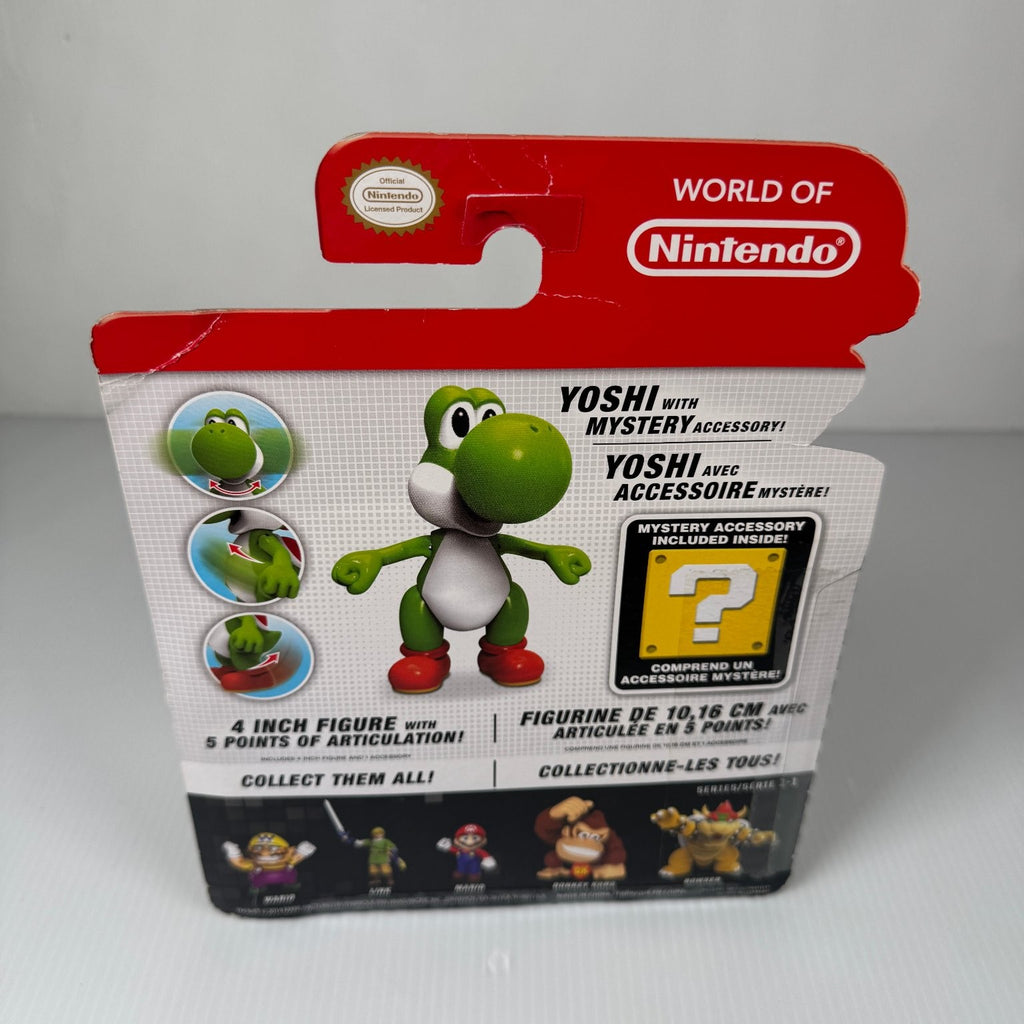 Packaged in its original blister card with the iconic red World of Nintendo branding, the figure includes a mystery accessory, enhancing the collectible appeal and surprise factor. The packaging displays official Nintendo licensing and series information, making this a great addition for both collectors and fans of the Super Mario video games. Ideal for display or play, this Yoshi figure brings a touch of classic gaming nostalgia to any collection.